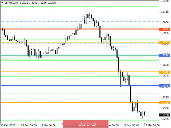 Торговый план по GBP/USD на 17.03.2020 и торговая рекомендацияИнстаФорекс - Instaforex, 5 лет назад Неожиданное решение Федеральной Резервной Системы в очередной раз снизить ставку рефинансирования, на этот раз аж с 1,25% до 0,25%, ввело рынок в ступор. Инвесторы действительно не понимают, что им делать и чего ждать. Ведь решение было принято не просто в выходные, но всего за три дня до регулярного заседания Федерального комитета по операциям на открытом рынке. И в этой ситуации ничего иного не остается, как предполагать, что ситуация столь ужасающая, что экстренные меры нужно принимать безотлагательно. Понятное дело, что это еще больше провоцирует панику. И инвесторы пока не понимают, что происходит. Именно по этой причине мы видим застой по фунту, так как крупные игроки пока еще не определились с тем, как им себя вести. С другой стороны, рынок в любом случае ждал снижения ставки рефинансирования Федеральной Резервной Системы. Правда, в меньшем масштабе, и все же в ходе планового заседания. Кроме этого, столь резкий шаг вынуждает Банк Англии снизить ставку рефинансирования гораздо в большем масштабе, нежели заявлялось ранее. Следовательно, Банк Англии может снизить ставку рефинансирования ниже 0,1%, который объявлен нижней допустимой границей. Тем не менее сегодня у фунта есть возможность немного подрасти, так как в самой Великобритании ожидается снижение уровня безработицы с 3,8% до 3,7%. В сочетании с этим тот факт, что темпы роста средней заработной платы должны остаться неизменными, смотрится даже очень и очень хорошо. Единственное, что может разочаровать участников рынка, так это рост с 5,5 тыс. до 24,0 тыс. числа заявок на пособия по безработице. Кроме этого, занятость может вырасти на 150 тыс. против 180 тыс. в предыдущем месяце. Однако рост числа заявок, а также замедление темпов роста занятости на фоне сокращения уровня безработицы не выглядит чем-то таким уж ужасающим. Уровень безработицы (Великобритания): Но если британскую макроэкономическую статистику можно назвать умеренно оптимистичной, то вот прогнозы по американской однозначно являются негативными. В частности, темпы роста розничных продаж могут замедлиться с 4,4% до 2,7%, что явно многих разочарует. Ведь именно потребительская активность является главной движущей силой американской экономики. Кроме этого, будут публиковаться еще и данные по промышленному производству, темпы спада которого должны замедлиться с -0,8% до -0,3%. Так что называть эти данные позитивными является тем еще извращением, так как спад никуда не девается, и длиться он уже пять месяцев подряд. А если прогнозы подтвердятся, то промышленное производство в Соединенных Штатах будет снижаться уже шесть месяцев кряду. Промышленное производство (Соединенные Штаты): В плане технического анализа мы видим сохраняющийся нисходящий интерес, который сумел за считанную неделя развернуть котировку более чем на 800 пунктов. Фактически мы получили пробой сразу нескольких ценовых уровней, а котировка спустилась в район октября минувшего года. Последующее колебание происходила в фазе застоя, где котировка сфокусировалась на рамках 1,2200/1,2280. Рассматривая торговый график в общем плане, мы видим восстановление относительно среднесрочной восходящей тенденции, где отработка уже превысила отметку в 70%. Вероятно предположить, что временный зас
