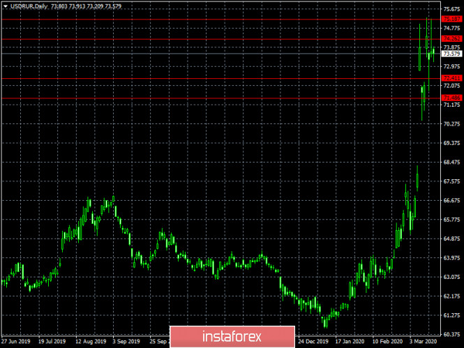 Банк России стремится повторить чужие ошибки (обзор USD/RUB от 17.03.2020)ИнстаФорекс - Instaforex, 5 лет назад Рубль продолжает весело скакать на месте. По-другому это никак не назовешь. Торги открылись в районе чуть выше 73,50 рубля за доллар. И примерно там же завершились. Правда, в течение дня доллар упорно пытался прыгнуть выше отметки в 75 рублей. На некоторое время у него это даже получилось. Но вот закрепиться там ему не удалось. И происходит это все на фоне дальнейшего обвала цен на нефть, которые грохнулись уже ниже отметки 30 долларов за баррель. Причем как Brent, так и WTI. И честно говоря, вот теперь уже появляется повод для беспокойства, так как Банк России продолжает выходить на рынок с продажей валюты, тем самым сдерживая и корректируя колебания валютных курсов. Проще говоря, Банк России пытается за счет резервов искусственно сдерживать курс рубля. Тем самым Банк России банально приглашает спекулянтов устроить атаку на рубль, и призом в этой игре являются все резервы Центрального банка размером свыше полутриллиона долларов. Если Банк России в ближайшее время не повысит ключевую ставку и не прекратит распродажу валюты, то он повторит ровно ту же ошибку, которую допустили многие центральные банки в период с 2013 по 2015 года. Как все прекрасно помнят, тогда рубль серьезно обвалился, но произошло это быстро и внезапно, после чего наступил длительный период стабилизации ситуации на рынке. Банк России тогда не играл в кошки-мышки со спекулянтами, а просто повысил ключевую ставку и оставил многих спекулянтов один на один с их убытками и кредиторами. Огромное количество спекулянтов тогда разорилось. Огромное же количество центральных банков тогда решило сохранить видимую стабильность и просто сжигало свои резервы на поддержание курсов национальных валют. В итоге резервы закончились, и курсы национальных валют все равно обвалились. Но целые страны остались без резервов, что привело к гораздо большим экономическим последствиям. Взгляните хотя бы на страны Латинской Америки, которые по сей день не могут выбраться из экономического болота. Так что Банку России нужно как можно скорее прекращать это безобразие. Тем более что всего несколько лет назад именно Банк России оказался чуть ли не единственным центральным банком, который смог обвести спекулянтов вокруг пальца. Так что нынешние действия Банка России даже вызывают некое недоумение. Другое дело, что главным фактором, заставляющим Банк России идти на эти совершенно глупые меры, является катастрофический обвал цен на нефть. Так вот, если цены на нефть начнут расти, то рубль может отделаться легким испугом. И ведь есть все признаки того, что паническое падение цен на нефть уже завершилось. На это указывает тот факт, что если стоимость нефти марки Brent вчера упала аж на 16,0%, то вот WTI снизилась всего на 4,6%. Это говорит о том, что ценам на нефть уже некуда падать, так как они практически уперлись в среднюю себестоимость добычи. А значит, нефтедобывающим странам банально невыгодно добывать черное золото. Это неизбежно приведет к формированию дефицита нефти, пусть и локальному. Но, учитывая зависимость современного мира от нефти, даже намек на это станет поводом для взрывного роста цен на нефть. Учитывая тот факт, что на рынке, по всей видимости, сейчас присутствуют спекулянты, пока крупные инвесторы за