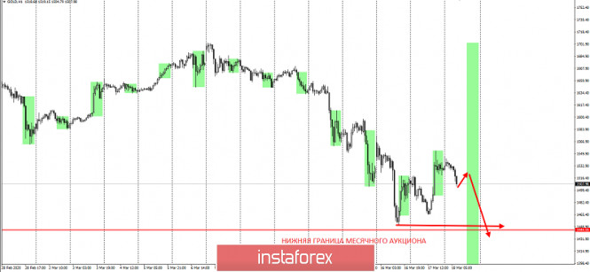Итак, в своих видеообзорах я не раз упоминал о гигантском золотом аукционе, который стал наиболее хорошо виден в начале этой недели, когда золото за один день прошло рекордные 12000п. Многие не понимают, с чем это связано, поэтому я поясню. Золото - индикатор долларовых страхов, и инвесторы покупают его за доллары, чтобы пережить трудные времена. Так было и до начала марта, когда всех пугал только коронавирус. Но потом произошло очень интересное событие - обвал фондовых рынков. И вот теперь представьте себе такую ситуацию. Вы сидите в золоте, "не жужжите", и вдруг видите, что фондовые активы, которые вы мечтали купить и держать, стали стоить в 2 раза дешевле. Что вы будете делать? Так вот - вы будете продавать золото, чтобы за доллары, как можно дешевле, купить фонду и сидеть в этих бумагах вечно. Именно поэтому и ставку американцы обнулили, чтобы люди на дешёвые кредиты покупали за копейки американские акции, удерживая их от обвала. С этой точки зрение падение золота выглядит наиболее логичным, а главное - фундаментально обоснованным. Но самое главное, что этот процесс вовсе не окончен, и переход долларов из золота на фондовый рынок будет продолжаться и дальше. С точки зрения нашего торгового метода - как минимум до пробоя нижней границы месячного аукциона по котировке 1440.