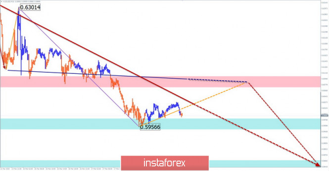 Упрощенный волновой анализ EUR/USD, AUD/USD, GBP/JPY на 18 мартаИнстаФорекс - Instaforex, 5 лет назад EUR/USD Анализ: Ценовое снижение от 9 марта на графике европейской валюты по своему волновому уровню вышло на уровень масштаба Н4. Цена достигла верхней границы потенциальной зоны разворота. Со вчерашнего дня вверх формируется ценовой откат. Прогноз: В предстоящие сутки ожидается образование восходящей коррекции. В случае прорыва ближайшей зоны сопротивления котировки евро могут достигнуть дальней верхней зоны уже сегодня. Зоны потенциального разворота Сопротивление: - 1.1180/1.1210 - 1.1070/1.1100 Поддержка: - 1.0990/1.0960 Рекомендации: На рынке формируется коррекция основного направления движения евро, поэтому покупки могут быть довольно рискованны. Лот лучше снизить. Оптимальной тактикой будет воздержаться от торговли на время подъема, с отслеживанием наилучших мест продажи пары. AUD/USD Анализ: Глобальный тренд австралийской валюты в последние 2 года смотрит на «юг» графика. Его последний участок стартовал в начале текущего года. Цена к настоящему времени достигла верхней границы промежуточной зоны поддержки. На мелком масштабе графика образовались условия для начала отката. Прогноз: В ближайшие сутки ожидается флетовый настрой движения в виде «боковика». Не исключен восходящий вектор. Подъем цены возможен не далее расчетного сопротивления. На возврат к нисходящему курсу можно рассчитывать в конце суток либо завтра. Зоны потенциального разворота Сопротивление: - 0.6070/0.6100 Поддержка: - 0.5980/0.5950 - 0.5860/0.5830 Рекомендации: Покупки «аусси» сегодня не актуальны. Рекомендуется оставаться вне рынка пары на время ценового отката вверх. При смене курса перспективными будут продажи инструмента. GBP/JPY Анализ: Направление движения кросса с середины декабря прошлого года задается нисходящей волной. Структура волны формально завершена. Предварительные цели снижения достигнуты. Котировки находятся в рамках сильной зоны разворота. Боковые движения последних 3-х дней создают условия для начала ценового отката вверх. Прогноз: Сегодня на рынке пары ожидается общий восходящий настрой движения цены. Верхняя зона сопротивления показывает максимально ожидаемый уровень ценового роста в ближайшие дни. Зоны потенциального разворота Сопротивление: - 131.30/131.60 - 130.30/130.60 Поддержка: - 129.30/129.00 Рекомендации: Потенциал для продаж на рынке кросса исчерпан. Торговля возможна только в рамках внутридневного стиля торговли. На ближайших сессиях покупки в приоритете. Пояснения: В упрощенном волновом анализе (УВА) волны состоят из 3 частей (А-В-С). Анализируется последняя незавершенная волна. Сплошным фоном стрелок показана сформированная структура, пунктирным - ожидаемые движения. Внимание: Волновой алгоритм не учитывает продолжительность движений инструмента по времени! Материал предоставлен компанией InstaForex - www.instaforex.com |