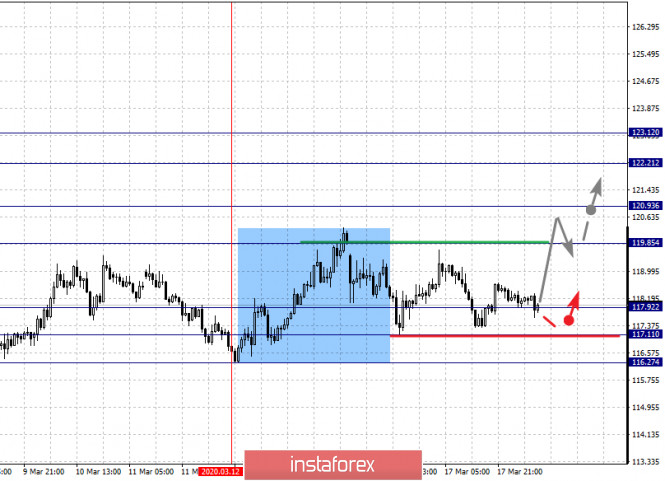 Фрактальный анализ по основным валютным парам на 18 мартаИнстаФорекс - Instaforex, 5 лет назад Прогноз на 18 марта: Аналитический обзор валютных пар в масштабе Н1: По паре Евро/Доллар ключевыми уровнями в масштабе Н1 являются: 1.1202, 1.1114, 1.1065, 1.0988, 1.0942, 1.0851 и 1.0777. Здесь, мы продолжаем следить за развитием нисходящего цикла от 9 марта. Краткосрочное нисходящее движение, ожидаем в диапазоне 1.0988 – 1.0942, пробой последнего значения приведет к выраженному нисходящему движению, здесь цель – 1.0851, от этого уровня существует высокая вероятность разворота в коррекцию. Потенциальным значением для низа, считаем уровень 1.0777, по достижении этого значения ожидаем откат к верху. Краткосрочное восходящее движение, ожидаем в диапазоне 1.1065 – 1.1114, пробой последнего значения приведет к углубленной коррекции, здесь цель – 1.1202, этот уровень является ключевой поддержкой для нисходящей структуры. Основная тенденция – нисходящий цикл от 9 марта Торговые рекомендации: Buy: 1.1065 Take profit: 1.1112 Buy: 1.1115 Take profit: 1.1200 Sell: 1.0940 Take profit: 1.0854 Sell: 1.0848 Take profit: 1.0778 По паре Фунт/Доллар ключевыми уровнями в масштабе Н1 являются: 1.2410, 1.2267, 1.2174, 1.2051, 1.1920 и 1.1687. Здесь, мы следим за развитием нисходящего цикла от 9 марта. Краткосрочное нисходящее движение, а также консолидацию, ожидаем в диапазоне 1.2051 – 1.1920, отсюда существует высокая вероятность разворота в корректировочное движение. Потенциальным значением для низа, считаем уровень 1.1687, движение к данному значению рассматриваем, как неустойчивое. Краткосрочное восходящее движение, возможно в коридоре 1.2174 – 1.2267, пробой последнего значения приведет к углубленной коррекции, здесь цель – 1.2410, этот уровень является ключевой поддержкой для нисходящей структуры. Основная тенденция – нисходящий цикл от 9 марта Торговые рекомендации: Buy: 1.2174 Take profit: 1.2265 Buy: 1.2269 Take profit: 1.2410 Sell: 1.2048 Take profit: 1.1922 Sell: 1.1917 Take profit: 1.1690 По паре Доллар/Франк ключевыми уровня в масштабе Н1 являются: 0.9779, 0.9686, 0.9641, 0.9570, 0.9518 и 0.9444. Здесь, мы следим за развитием восходящего цикла от 9 марта. Краткосрочное восходящее движение, ожидаем в диапазоне 0.9641 – 0.9686, пробой последнего значения должен сопровождаться выраженным восходящим движением, здесь потенциальная цель – 0.9779, по достижении этого уровня ожидаем откат к низу. Краткосрочное нисходящее движение, возможно в коридоре 0.9570 – 0.9518, пробой последнего значения приведет к углубленной коррекции, здесь цель – 0.9444, этот уровень является ключевой поддержкой для верха. Основная тенденция – восходящий цикл от 9 марта Торговые рекомендации: Buy: 0.9641 Take profit: 0.9685 Buy: 0.9688 Take profit: 0.9775 Sell: 0.9570 Take profit: 0.9520 Sell: 0.9516 Take profit: 0.9445 По паре Доллар/Иена ключевыми уровнями в масштабе являются: 111.11, 110.31, 108.96, 108.00, 106.60, 105.97 и 105.02. Здесь, мы следим за развитием восходящего цикла от 9 марта. Продолжения движения к верху, ожидаем после пробоя 108.00, в данном случае цель – 108.96, возле этого уровня консолидация. Пробой 108.96 приведет к развитию выраженного движения, здесь цель – 110.31. Потенциальным значением для верха, считаем уровень 111.11, по достижении этого значения ожидаем консолидацию, а также откат к низу. Краткосрочное нисходяще движение, возможно в коридоре 106.60 – 105.97, пробой последнего значения приведет к углубленной коррекции, здесь цель – 105.02, этот уровень является ключевой поддержкой для верха. Основная тенденция: восходящий цикл от 9 марта Торговые рекомендации: Buy: 108.00 Take profit: 108.