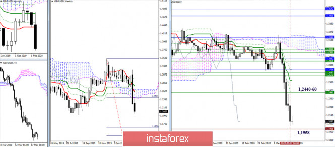 EUR/USD и GBP/USD 18 марта – рекомендации технического анализаИнстаФорекс - Instaforex, 5 лет назад Экономический календарь (время московское) В экономическом календаре сегодня достаточно много разнообразной статистики, но среди важных показателей можно отметить лишь индекс потребительских цен Европы (13:00), число выданных разрешений на строительство в США (15:30) и запасы сырой нефти (США, 17:30). EUR/USD Торможение у заключительных поддержек дневного и недельного крестов Ишимоку, а также дневного облака завершилось. Игроки на понижение продолжили снижение, преступив к ликвидации мёртвых крестов и формируя новую понижательную цель на пробой дневного облака. В настоящий момент встречены исторические уровни 1,0980-90, которые сейчас оказывают поддержку и притяжение. Среди дальнейших ориентиров можно обозначить поддержки 1,0918-1,0853 (исторический уровень + цель на пробой облака Н4) и 1,0778 (минимальный экстремум). Сопротивления, образованные скоплением различных уровней старших временных интервалов, сохраняют сегодня своё расположение на 1,1051 – 1,1137 – 1,1222. Вчера после закрепления под центральным Пивот-уровнем пара продолжила снижение. В текущей ситуации преимущество по-прежнему полностью на стороне игроков на понижение, несмотря на нахождении в зоне зарождающейся восходящей коррекции. Обновление минимума вчерашнего дня (1,0955) будет способствовать очередному усилению медвежьих настроений и продолжению нисходящего тренда. Ориентиры для снижения внутри дня сегодня можно отметить на поддержках классических Пивот-уровней 1,0912 – 1,0817 – 1,0678. GBP/USD Снижение продолжено. Игроки на понижение доминируют, используя потенциал прошлой недели. Пара близка к восстановлению месячного нисходящего тренда (1,0958). Следующим ориентиром в данном направлении будет служить цель на пробой недельного облака (1,1600 – 1,1388). Наиболее значимые сопротивления старших таймов сейчас можно отметить в районе 1,2440-60, где объединяют свои усилия дневной Фибо Киджун и недельный Сенкоу Спан А. Нисходящий тренд продолжает своё развитие, понижательными ориентирами внутри дня являются поддержки классических Пивот-уровней 1,1950 – 1,1839 – 1,1678. Игроки на понижение при действующем снижении используют сейчас минимальные корректировки. В сложившихся условиях закрепление выше центрального Пивот-уровня дня, сегодня он расположен на 1,2111, может послужить развитию более длительной и результативной восходящей коррекции. Следующим ориентиром для коррекции в этом случае станет сопротивление недельной долгосрочной тенденции (1,2441), промежуточные сопротивления сегодня можно отметить на 1,2222 (R1) и 1,2383 (R2). Ichimoku Kinko Hyo (9.26.52), Pivot Points (классические), Moving Avarage (120) Материал предоставлен компанией InstaForex - www.instaforex.com |