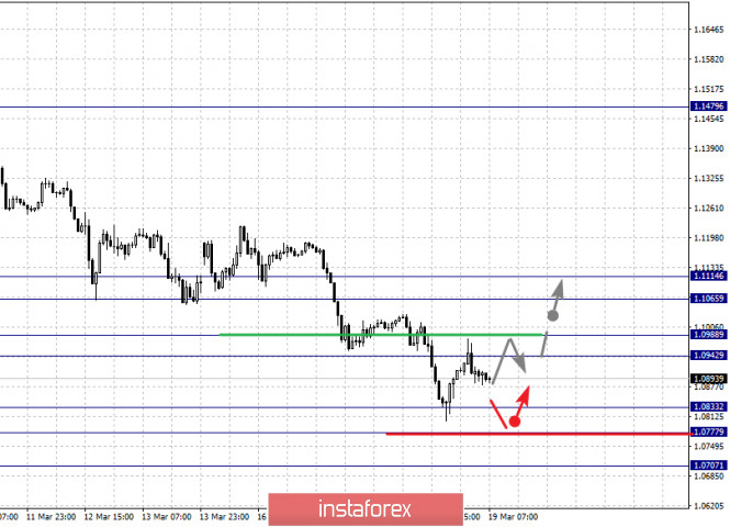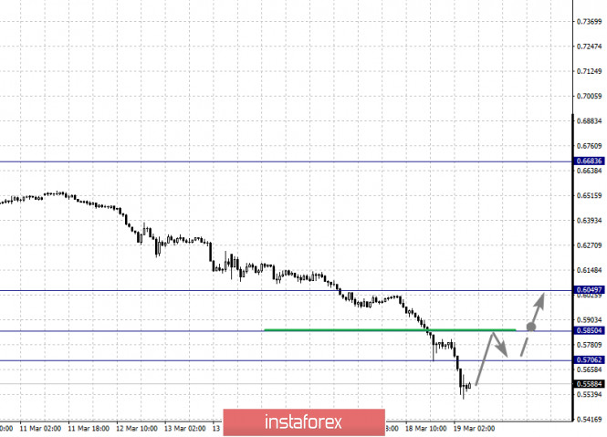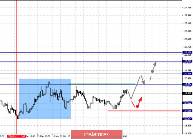 Фрактальный анализ по основным валютным парам на 19 мартаИнстаФорекс - Instaforex, 5 лет назад Прогноз на 19 марта: Аналитический обзор валютных пар в масштабе Н1: По паре Евро/Доллар ключевыми уровнями в масштабе Н1 являются: 1.1114, 1.1065, 1.0988, 1.0942, 1.0833, 1.0777 и 1.0707. Здесь, мы продолжаем следить за развитием нисходящего цикла от 9 марта и, преимущественно, ожидаем движение в коррекцию. Краткосрочное нисходящее движение, возможно в диапазоне 1.0833 – 1.0777, пробой последнего значения позволит рассчитывать на движение к потенциальному значению - 1.0707, по достижении этого уровня ожидаем откат к верху. Краткосрочное восходящее движение, ожидаем в диапазоне 1.0942 – 1.0988, пробой последнего значения приведет к углубленной коррекции, здесь цель – 1.1065, диапазон 1.1065 – 1.1114 является ключевой поддержкой для нисходящей структуры, в нем мы ожидаем оформления вершины начальных условий для восходящего цикла. Основная тенденция – нисходящий цикл от 9 марта, ожидаем развития коррекции Торговые рекомендации: Buy: 1.0942 Take profit: 1.0986 Buy: 1.0990 Take profit: 1.1065 Sell: 1.0833 Take profit: 1.0780 Sell: 1.0775 Take profit: 1.0710 По паре Фунт/Доллар ключевыми уровнями в масштабе Н1 являются: 1.2051, 1.1920 и 1.1687. Здесь, цена находится возле предельных значений для нисходящего цикла от 9 марта, в связи с чем, мы ожидаем откат в корректировочную область и оформления начальных условий для восходящего цикла. Движение в коррекцию, ожидаем после пробоя 1.1687, в данном случае первая цель – 1.1920. В качестве потенциального значения, пока рассматриваем уровень 1.2051, возле которого, ожидаем консолидацию. Основная тенденция – ожидаем уход в коррекцию Торговые рекомендации: Buy: 1.1687 Take profit: 1.1920 Buy: 1.1923 Take profit: 1.2050 Sell: Take profit: Sell: Take profit: По паре Доллар/Франк ключевыми уровня в масштабе Н1 являются: 0.9914, 0.9843, 0.9779, 0.9641, 0.9570 и 0.9518. Здесь, мы следим за развитием восходящего цикла от 9 марта. Краткосрочное восходящее движение, ожидаем в диапазоне 0.9779 – 0.9843, пробой последнего значения позволит рассчитывать на движение к потенциальной цели – 0.9914, по достижении этого уровня ожидаем откат к низу. Уход в коррекцию, ожидаем после пробоя 0.9640, в данном случае цель – 0.9570. Диапазон 0.9570 – 0.9518 является ключевой поддержкой для восходящей структуры, в нем мы ожидаем оформления вершины начальных условий для нисходящего цикла. Основная тенденция – восходящий цикл от 9 марта Торговые рекомендации: Buy: 0.9780 Take profit: 0.9840 Buy: 0.9845 Take profit: 0.9914 Sell: 0.9636 Take profit: 0.9570 Sell: 0.9570 Take profit: 0.9518 По паре Доллар/Иена ключевыми уровнями в масштабе являются: 112.85, 111.11, 110.31, 108.80. 108.00 и 106.60. Здесь, мы следим за развитием восходящего цикла от 9 марта. Краткосрочное восходящее движение, ожидаем в диапазоне 110.31 – 111.11, пробой последнего значения должен сопровождаться выраженным восходящим движением, здесь потенциальная цель – 112.85, по достижении этого уровня ожидаем откат к низу. Краткосрочное нисходяще движение, возможно в коридоре 108.80 – 108.00, пробой последнего значения приведет к углубленной коррекции, здесь цель – 106.60, этот уровень является ключевой поддержкой для верха. Основная тенденция: восходящий цикл от 9 марта Торговые рекомендации: Buy: 110.31 Take profit: 111.10 Buy: 111.20 Take profit: 112.85 Sell: 108.80 Take profit: 108.00 Sell: 107.98 Take profit: 106.60 По паре Канадский доллар/Доллар ключевыми уровнями в масштабе Н1 являются: 1.5012, 1.4814, 1.4707, 1.4561, 1.4484 и 1.4376. Здесь, мы следим за восходящим циклом от 13 марта. Краткосрочное восходящее движение, ожидаем в диапаз