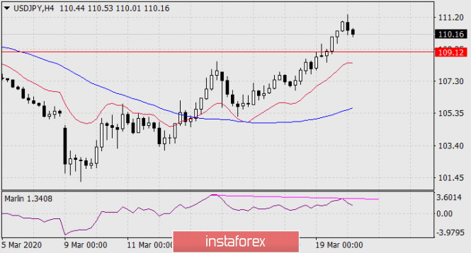 Сегодня в Японии выходной праздничный день, японские площадки закрыты и йена получает лишь опосредованную поддержку от Банка Японии. Как результат, пара USD/JPY снижается не смотря но рост азиатских фондовых индексов. Сигнальная линия осциллятора Марлин слегка разворачивается вниз, что может означать завершение восходящей корркции от текущих уровней и линия ценового канала на отметке 111.98 может быть не достигнута.