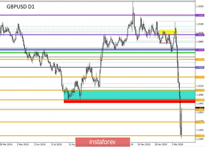 Торговые рекомендации по валютной паре GBPUSD – перспективы дальнейшего движенияИнстаФорекс - Instaforex, 5 лет назад С точки зрения комплексного анализа мы видим высокую активность, которая привела котировку к восстановительному процессу, а теперь о деталях. Колебания в 100–200–300 пунктов уже являются чем-то обыденным, участники рынка в очередной раз обновили исторический минимум, где крайней отметкой стало значение 1,1411. Фактически здесь нет ничего удивительного, внешний фон и панический настрой давит на рынок, что приводит к активизации спекулянтов, которые начинают гонять котировку по графику. В то же время котировка на фоне исторических минимумов, а также внешнего потока сформировала условный диапазон, границы которого являлись 1,1450 (+/- 35 pip) и 1,1750 (+/- 40 pip). Относительно теории нисходящего развития имеется небольшая заминка, минимумы, которые уже достигла котировка, оказывают существенное давление на участников рынка, они буквально боятся идти дальше. Этот процесс несет в себе временный характер и связан он со значительным перегревом минувших дней. Фактически имеющийся диапазон пытается выпрямить ситуацию с перегревом. Стоит учесть, что в случае эскалации внешнего фона фунт стерлинг окажется в безвыходном положении, что приведет к дальнейшему снижению курса. Естественно, вечно это продолжаться не может, тем самым тщательный анализ информационного потока поможет нам выявить точки возможного разворота. Как вы уже догадались из контекста, наша будущая тема обсуждения – «Теория восходящего развития». В плане волатильности мы видим показатели, которые приводят спекулянтов к эйфории. Фактически на ежесуточной основе мы сталкиваемся с МЕГА-активностью, которая не просто преодолевает среднее значение, но и бьет его в кратных величинах. На данное время нет причин для снижения активности, тем самым продолжаем работу на высоких скоростях. Детали волатильности: понедельник – 165 пунктов; вторник – 245 пунктов; среда – 172 пункта; четверг – 358 пунктов; пятница – 359 пунктов; понедельник – 144 пунктов; вторник – 271 пункт; среда – 676 пунктов; четверг – 354 пунктов. Среднесуточный показатель, относительно динамики волатильности – 141 пункт [смотрите таблицу волатильности в конце статьи]. Детализируя поминутно минувший день, мы видим зеркальную V-образную формацию, где вначале мы зафиксировали восходящий всплеск, который локально привел нас в район 1,1790, но после чего произошел обратный залив, возвращая котировку к точке основания. Наиболее яркие колебания пришли на период 17:45–19:45, время по торговому терминалу. Как обсуждалось в предыдущем обзоре, среднесрочные трейдеры активно фиксировали прибыль с коротких позиций, так как их сделки удерживались уже длительное время, а основная перспектива были достигнута. Рассматривая торговый график в общем плане [дневной период], мы видим, что на основании импульсного нисходящего хода появляется первая восходящая свеча. Стоит учесть, что восемь торговых дней подряд котировка стремительно снижалась, имея масштаб более 1600 пунктов. Новостной фон минувшего дня имел в себе данные по заявкам на пособие по безработице в Соединенных Штатах, где зафиксировали рост заявок на 72тыс. [Первичных +70 тыс.; повторных +2 тыс.]. Данные говорят о не лучшей ситуации на рынке труда США. Основным событием минувшего дня являлось оч