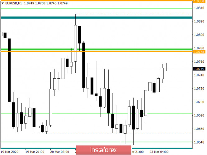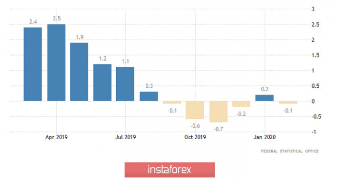 Горящий прогноз по EUR/USD на 23.03.2020 и торговая рекомендацияИнстаФорекс - Instaforex, 5 лет назад Финансовые рынки, в отличие от физического мира, не могут вечно находиться в состоянии свободного падения, и рано или поздно происходит отскок или застой, с последующим восходящим движением. Правда, этот самый отскок может быть лишь предвестником дальнейшего снижения. В любом случае то, что мы наблюдаем на валютном рынке в течение последних дней предыдущей недели, во многом напоминает тот самый застой. Хотя волатильность все равно сильно зашкаливает, и трудно назвать это все застоем. Но на фоне снижения предшествующих дней это и вправду застой. При этом если посмотреть на европейские статистические данные, становится понятно, что речь действительно идет по крайней мере о локальном исчерпании сил доллара на дальнейший рост. Ведь макроэкономическая статистика в Старом Свете лишь продолжает разочаровывать. В частности, темпы роста цен производителей в Германии сменились спадом с 0,2% до -0,1%, что ставит под сомнение саму возможность роста инфляции во всей Европе. Более того, речь идет не просто о снижении, а о возобновлении спада цен производителей, так как их росту в январе предшествовал спад, длившийся аж четыре месяца подряд. Профицит платежного баланса Европы в январе составил 8,7 млрд евро, что на фоне декабрьского профицита в 51,2 млрд евро выглядит просто смешно. В том же самом январе платежный баланс Италии оказался дефицитным на 0,2 млрд евро. Притом за декабрь его профицит равнялся 5,1 млрд евро. Кроме этого, если в декабре дефицит торгового баланса Испании составил -2,1 млрд евро, то в январе он увеличился до -3,5 млрд евро. Проще говоря, за пятницу ни одной позитивной новости из Европы просто не было. Индекс цен производителей (Германия): А вот американская статистика, наоборот, очень даже радовала. Продажи жилья на вторичном рынке увеличились аж на 6,5%. С 5 420 тыс. до 5 770 тыс. Конечно, и так ждали роста, но лишь на скромные 0,5%. Продажи жилья на вторичном рынке (Соединенные Штаты): Сегодня никаких макроэкономических показателей не публикуется, так что единственное, на что могут опереться участники рынка, так это очередные сведения о распространении коронавируса. В некоторой степени приостановка роста доллара может быть связана именно с этим, так как за последние дни именно в Соединенных Штатах наблюдается взрывной рост числа случаев заболеваниям этим жутким вирусом. Хотя и в Европе ситуация не лучше, так как число умерших от коронавируса в Италии лишь растет и уже превысило число умерших в Китае. С точки зрения технического анализа мы видим очередное обновление локальных минимумов, где котировка спустилась в район 1,0636 и после чего развернулась, как это было периодом ранее - 20 марта 2020. Фактически мы видим своеобразное боковое движение с высокой амплитудой колебания. Относительно среднесуточной активности мы имеем стабильные показатели выше 200 пунктов. В плане общего рассмотрения торгового графика мы видим инерционный нисходящий ход в структуре глобального тренда, где до обновления исторических минимумов осталось менее 500 пунктов. Можно предположить временное движение в сторону уровня 1,0775, где в его районе может произойти замедление с последующим возвратом цены к минимальным отметкам предыдущего периода. Конкретизируем все вышесказанное в т