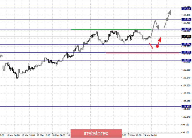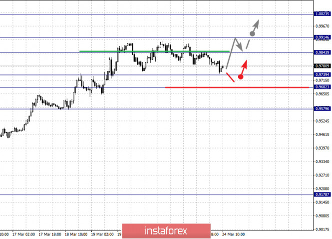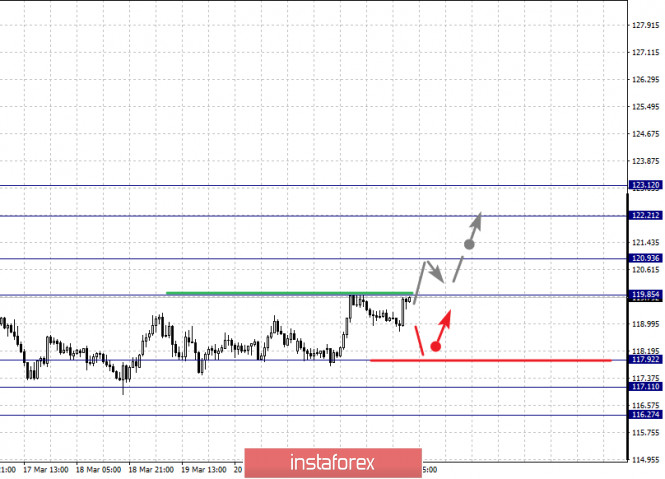 Фрактальный анализ по основным валютным парам на 24 мартаИнстаФорекс - Instaforex, 5 лет назад Здравствуйте, уважаемые коллеги. По паре Евро/Доллар следим за формированием потенциала для верха от 20 марта, уровень 1.0881 ключевое сопротивление, уровень 1.0718 ключевая поддержка. По паре Фунт/Доллар цена формирует начальные условия для верха от 19 марта, уровень 1.1920 ключевое сопротивление. По паре Доллар/Франк следим за восходящим циклом от 9 марта, здесь существует высокая вероятность развития коррекции. По паре Доллар/Иена цена находится в корректировочной зоне от восходящего цикла 9 марта. По паре Евро/Иена цена формирует локальные начальные условия для верха от 12 марта, уровень 119.85 ключевое сопротивление, уровень 117.11 ключевая поддержка, сегодня ожидаем ключевого развития ситуации. По паре Фунт/Иена мы расширили потенциал для восходящего движения от 18 марта до уровня 138.12, по достижении этого значения ожидаем откат книзу. Прогноз на 24 марта: Аналитический обзор валютных пар в масштабе Н1: По паре Евро/Доллар ключевыми уровнями в масштабе Н1 являются: 1.1047, 1.0988, 1.0942, 1.0881, 1.0833, 1.0718 и 1.0648. Здесь мы следим за формированием восходящего потенциала от 20 марта. Краткосрочное восходящее движение ожидаем в диапазоне 1.0833 – 1.0881, пробой последнего значения позволит рассчитывать на движение к уровню 1.0942, в коридоре 1.0942 – 1.0988 консолидация. Потенциальным значением для верха считаем уровень 1.1047, по достижении которого ожидаем откат книзу. Краткосрочное нисходящее движение ожидаем в диапазоне 1.0718 – 1.0648. Основная тенденция – нисходящий цикл от 9 марта, ожидаем уход в коррекцию Торговые рекомендации: Buy: 1.0833 Take profit: 1.0880 Buy: 1.0882 Take profit: 1.0942 Sell: 1.0718 Take profit: 1.0650 Sell: Take profit: По паре Фунт/Доллар ключевыми уровнями в масштабе Н1 являются: 1.2378, 1.2261, 1.2078, 1.1920, 1.1521 и 1.1399. Здесь мы следим за формированием начальных условий для восходящего цикла от 19 марта. Продолжения движения кверх, ожидаем после пробоя 1.1920, в данном случае цель – 1.2078, возле этого уровня консолидация цены. Пробой 1.2080 приведет к выраженному движению, в данном случае цель – 1.2261. Потенциальным значением для верха считаем уровень 1.2378, по достижении которого ожидаем консолидацию, а также откат книзу. Краткосрочное нисходящее движение пока ожидаем в диапазоне 1.1521 – 1.1399. Основная тенденция – формирование начальных условий для верха от 19 марта Торговые рекомендации: Buy: 1.1920 Take profit: 1.2076 Buy: 1.2080 Take profit: 1.2260 Sell: 1.1520 Take profit: 1.1400 Sell: Take profit: По паре Доллар/Франк ключевыми уровнями в масштабе Н1 являются: 1.0023, 0.9914, 0.9843, 0.9739, 0.9682 и 0.9579. Здесь мы следим за развитием восходящего цикла от 9 марта, на текущий момент ожидаем движение в коррекцию. Продолжения движения кверху,ожидаем после пробоя 0.9843, в данном случае цель – 0.9914, возле этого уровня консолидация. Потенциальным значением для верха считаем уровень 1.0023, по достижении которого ожидаем откат книзу. Краткосрочное нисходящее движение возможно в диапазоне 0.9739 – 0.9682, пробой последнего значения приведет к углубленной коррекции, здесь цель – 0.9579, до этого уровня ожидаем оформления выраженных начальных условий для нисходящего цикла. Основная тенденция – восходящий цикл от 9 марта, ожидаем развития коррекции Торговые рекомендации: Buy: 0.9845 Take profit: 0.9914 Buy: 0.9916 Take profit: 1.0020 Sell: 0.9739 Take profit: 0.9682 Sell: 0.9680 Take profit: 0.9580 По паре Доллар/Иена ключевыми уровнями в масштабе являются: 112.85, 111.11, 110.31, 108.80. 108.00 и 10