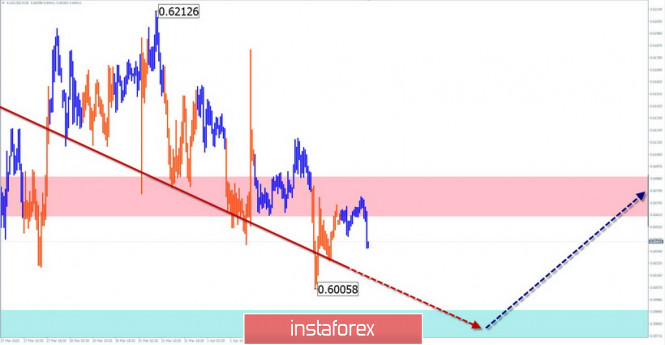 Упрощенный волновой анализ EUR/USD, AUD/USD, GBP/JPY на 3 апреляИнстаФорекс - Instaforex, 5 лет назад EUR/USD Анализ: С 20 марта на графике евро стартовала восходящая волна с очень высоким потенциалом хода. Масштаб движения превышает уровень ТФ Н1. С конца марта цена снижается. Коррекция близка к завершению. Цена находится в сильной разворотной зоне. Прогноз: Сегодня в первой половине дня ожидается флетовый настрой движения в коридоре между ближайшими встречными зонами. Вероятно, давление на зону поддержки с кратковременным проколом зоны. К концу дня вероятно повышение активности и смена курса. Ориентиром может служить время выхода новостного блока из США. Зоны потенциального разворота Сопротивление: - 1.0870/1.0900 Поддержка: - 1.0800/1.0770 Рекомендации: Потенциал для продажи евро в ближайшие сутки исчерпан. Сигналов покупки на графике пока не наблюдается. Рекомендуется воздержаться от торговли на рынке пары, отслеживая сигналы покупки. AUD/USD Анализ: На рынке австралийского доллара доминирует восходящая волна от 19 марта. В ее структуре цена формирует коррекцию. Верхняя граница предварительной целевой зоны находится в начале 60-й ценовой фигуры. Прогноз: Сегодня вероятно движение цены пары в боковом коридоре между встречными зонами. После давления на зону сопротивления вероятен откат вниз к зоне поддержки. К концу дня возможно повышение волатильности и начало активного ценового роста. Зоны потенциального разворота Сопротивление: - 0.6060/0.6090 Поддержка: - 0.5990/0.5960 Рекомендации: Для покупок условий на рынке «аусси» пока не создано. До появления четких сигналов разворота возможны кратковременные продажи в рамках интрадея. GBP/JPY Анализ: В краткосрочной перспективе на графике кросса направление задает восходящая волна от 19 марта. Всю последнюю неделю цена корректируется в узком коридоре между встречными расчетными зонами. Анализ ее структуры показывает отсутствие заключительной части. Прогноз: На ближайших торговых сессиях ожидается завершения текущей коррекции. При прорыве ближайший поддержки разворотным участком станет следующая зона. К концу суток вероятна смена направления и начало интенсивного ценового подъема. Зоны потенциального разворота Сопротивление: - 135.50/135.80 - 133.80/134.10 Поддержка: - 132.80/132.50 - 131.40/131.10 Рекомендации: Продажи пары сегодня возможны только при внутрисессионном стиле торговли. После завершения коррекции основное внимание рекомендуется уделить поиску сигналов покупки. Пояснения: В упрощенном волновом анализе (УВА) волны состоят из 3 частей (А-В-С). Анализируется последняя незавершенная волна. Сплошным фоном стрелок показана сформированная структура, пунктирным - ожидаемые движения. Внимание: Волновой алгоритм не учитывает продолжительность движений инструмента по времени! Материал предоставлен компанией InstaForex - www.instaforex.com |