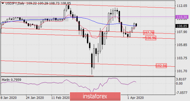 Прогноз по USD/JPY на 7 апреля 2020 годаИнстаФорекс - Instaforex, 5 лет назад USD/JPY Продолжение коррекционного роста возможно после выхода цены над максимум вчерашнего дня 109.39. Продолжение роста, впрочем, ограничено диапазоном 109.73-110.30. В диапазоне 109.73-110.30 находятся ценовые консолидации середины января и февраля, минимум марта прошлого года и другие исторические уровни.