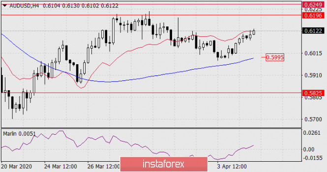 Прогноз по AUD/USD на 7 апреля 2020 годаИнстаФорекс - Instaforex, 5 лет назад AUD/USD Целью роста становится диапазон 0.6196-0.6249, образованный линией нисходящего ценового канала и минимумом февраля 2009 года. С выходом цены над уровень 0.6249 возможно продолжение роста к отметке 0.6355, к которой стремится линия Крузенштерна. После завершения коррекции ждём снижение цены к первой значимой поддержке на отметке 0.5825 – это также вложенная линия ценового канала старшего таймфрейма.