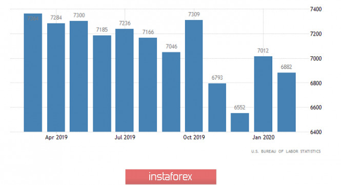 Горящий прогноз по EUR/USD на 08.04.2020 и торговая рекомендацияИнстаФорекс - Instaforex, 5 лет назад По всей видимости, пока рано говорить о том, что пик эпидемии коронавируса уже пройден. По итогам вчерашнего дня число новых случаев заражения несколько увеличилось по сравнению с понедельником. Тем не менее надежда еще есть, так как до повторения рекорда, установленного 4 апреля, еще далеко. В любом случае эта печальная статистика остановила рост единой европейской валюты, которая поначалу росла именно на волне оптимизма и надежды, что эпидемия в скором времени останется в прошлом. Вместе с тем у единой европейской валюты, по сути дела, кроме надежды на завершение эпидемии коронавируса, других причин для роста банально не было. Так, темпы спада промышленного производства в Германии ускорились с -0,9% до -1,2%. И это только в феврале. По всей видимости, мартовские данные покажут катастрофический провал промышленного производства. Правда, Италия попыталась сгладить этот негатив своими розничными продажами, темпы роста которых в феврале ускорились с 1,5% до 5,7%. Однако нужно признать, что значимость итальянской статистики существенно меньше, нежели немецкой. К тому же данные по розничным продажам все же за февраль. А как ни крути, но в марте ситуация кардинально поменялась, и ни у кого нет сомнений, что мы увидим сумасшедшее падение розничных продаж. Промышленное производство (Германия): А вот американская статистика внезапно оказалась существенно лучше прогнозов, так как число открытых вакансий JOLTS сократилось с 7 012 тыс. до 6 882 тыс. А ведь прогнозировали снижение аж до 5,6 млн. Так что еще в феврале американский рынок труда чувствовал себя неплохо. Данные как раз за февраль. Число открытых вакансий JOLTS (Соединенные Штаты): Сегодня рынки будут реагировать лишь на сообщения относительно эпидемии коронавируса. Никаких макроэкономических данных не публикуется, а текст протокола заседания Федеральной Резервной Системы вообще никакого интереса не представляет. Как-никак, но все решения уже приняты в ходе двух экстренных заседаний Федерального комитета по операциям на открытом рынке, а с тех пор ситуация столь стремительно поменялась, что все тогдашние прогнозы и планы можно выкинуть на помойку. С точки зрения технического анализа мы видим коррекцию относительно нисходящего хода минувшей недели. Точкой переменной опоры в имеющем движении стал уровень поддержки 1,0775, где и начался отсчет в сторону отметки 1,0925. Завершающим тактом стало частичное восстановление относительно коррекции, где цена практически достигла уровня 1,0850. В плане общего анализа торгового графика стоит выделить последовательную закономерность в виде инерций, которая тянется уже как с начала января. Можно предположить временное колебание относительно такта восстановления, где ключевыми координатами станут значения 1,0850/1,0925. Фактически метод торговли может быть выбран как внутри условного диапазона, так и на его пробой. Конкретизируем все вышесказанное в торговые сигналы: - Длинные позиции рассматриваем выше чем 1,0885,в сторону 1,0915. Основные сделки производятся выше чем 1,0930. - Короткие позиции рассматриваем ниже чем 1,0850, с перспективой хода к 1,0800-1,0775. С точки зрения комплексного индикаторного анализа мы видим переменный сигнал на покупку за счет недавнего всплеска длинных позиций. 