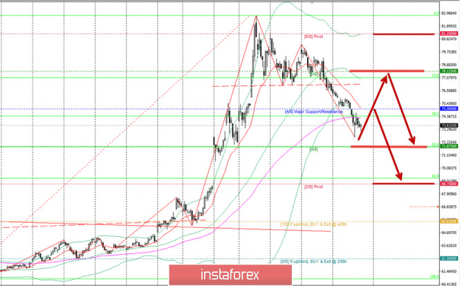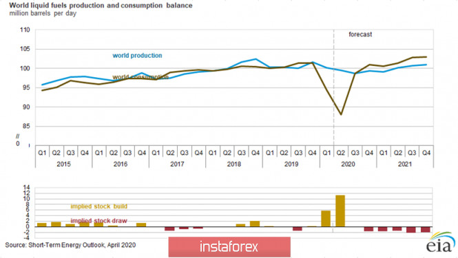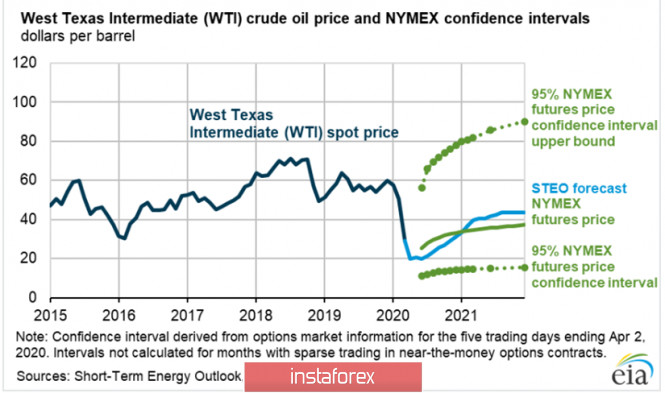Сделка OPEC++ и ее последствия для курса рубля USDRUB, на фоне пандемии COVID-19ИнстаФорекс - Instaforex, 5 лет назад Здравствуйте, уважаемые коллеги. Последствия пандемии коронавируса ощутили на себе все без исключения страны. Кто-то, как Китай и Южная Корея, находится в фазе завершения и постепенно переходит к восстановлению. Кто-то, как например страны Европы, подбирается к пику заболевания, а где-то, как в России и США, смертельная инфекция только набирает обороты. Первыми, последствия эпидемии ощутили на себе нефтедобывающие экономики, когда мировой спрос на нефть рухнул, при том, что добыча осталась на прежних значениях. В первом квартале текущего года Россия производила 11.52 млн. баррелей нефти и нефтепродуктов в сутки, Саудовская Аравия 9.77 млн., США добывали 12.73 млн. бочек. Общемировая добыча в марте 2020 года составила 99.02 млн. баррелей, потребление же упало до 89.38 млн. бочек. Спрос упал ниже уровня 2016 года, который тогда составлял 92 млн. баррелей. На рынке образовался профицит почти в 10 млн., что крайне негативно сказалось на цене нефти и курсе рубля. Глядя на эти цифры становится понятно, что никакое продление сделки ОПЕК, вину за срыв, которой США и Саудовская Аравия попытались возложить на Россию, не спасло бы ситуацию с балансом спроса и предложения на нефтяном рынке. Напомню читателям, что согласно соглашению ОПЕК+, истекшему 1 апреля 2020 года, страны входящие в картель, обязались сократить добычу на 1.5 млн. баррелей в сутки. Рис.1: Прогноз мирового потребления нефти и добычи без учета сделки ОПЕК++ Однако в свете разрастающейся эпидемии, перспективы нефтяного рынка, без учета сделки ОПЕК++, представляются еще более удручающими. Так, например, по подсчетам Агентства Энергетической Информации США — US EIA, в апреле мировое производство нефти составит 99.06 млн., в то время как потребление упадет 83.61 млн. баррелей, что образует профицит на рынках более 15.45 млн. В мае профицит возможно снизится, но при этом все равно будет превышать 12.6 млн. бочек. В июне размер профицита будет около 6 млн. В третьем квартале на рынках возможно образование шаткого баланса, после чего спрос начнет повышаться и к концу года превысит предложение (рис.1). Также предполагается, что США вновь станут нетто-экспортером нефти в третьем квартале текущего года. Краткосрочный прогноз цен от US EIA, с высокой неопределённостью, предполагает, что достигнув дна, в марте — апреле текущего года, цены на нефть начнут свое постепенное повышение, и в 2020 году составят в среднем 33 доллара за баррель. Для нефти WTI, по итогам года, прогнозируются цены на значении $29.6. В этом прогнозе с Агентством едины трейдеры биржи NYMEX/CME, предполагающие более высокие стоимостные оценки нефти WTI, которые составляют около 30 долларов за баррель до конца текущего года. При этом Агентство Энергетической Информации исходит из того, что цена нефти уже достигла дна и ниже опускаться не будет, но не учитывает договоренности ОПЕК++ (рис.2). Рис.2: Прогноз цены нефти от Агентства Энергетической Информации США и трейдеров биржи NYMEX/CME Несмотря на высокую неопределенность развития ситуации, можно спрогнозировать следующий сценарий для курса российского рубля. Если предположить, что вливания ФРС, ограничат отток капитала с развивающихся рынков, то во втором квартале российский рубль имеет все шансы остаться в коридоре 70 — 80 рублей за 