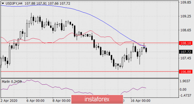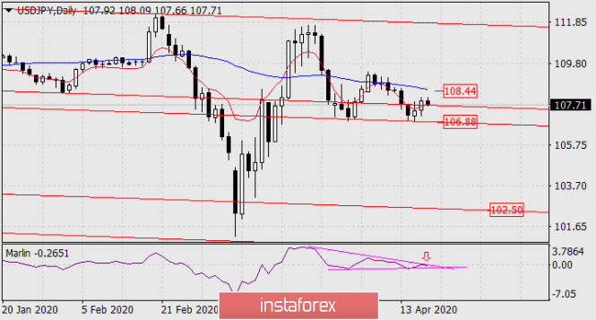 Прогноз по USD/JPY на 17 апреля 2020 годаИнстаФорекс - Instaforex, 5 лет назад USD/JPY При этом собственно линия осциллятора сформировала клин, что создаёт условие прорыва индикатора вниз. С наибольшей долей вероятности цена отработает поддержку по ближайшей линии на 106.88, преодоление которой впоследствии открывает цель 102.50.