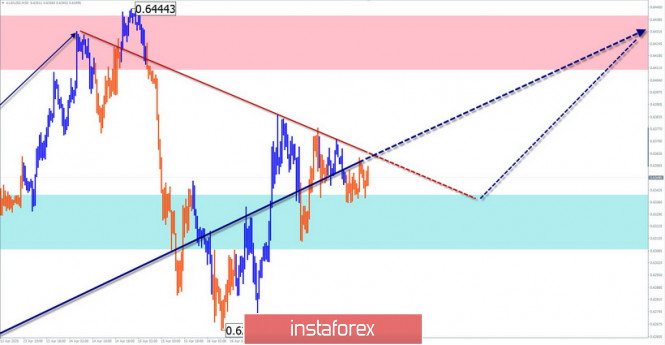 Упрощенный волновой анализ EUR/USD и AUD/USD на 20 апреляИнстаФорекс - Instaforex, 5 лет назад EUR/USD Анализ: Направление ценового тренда на рынке евро с 20 марта задается восходящей волной. В рамках заключительной части (С) с 9 апреля формируется медвежья коррекция неправильного вида. Начавшийся в конце прошлой недели ценовой подъем имеет высокий потенциал и может стать началом разворотной конструкции. Прогноз: Сегодня ожидается продолжение начавшегося ранее ценового подъема. В первой половине дня вероятно движение цены в боковой плоскости. Повышение волатильности и рост курса можно ждать к концу суток. Зоны потенциального разворота Сопротивление: - 1.0920/1.0950 Поддержка: - 1.0850/1.0820 Рекомендации: Продажи евро сегодня бесперспективны. Основное внимание рекомендуется уделить поиску сигналов покупки инструмента. AUD/USD Анализ: С 19 марта котировки австралийской валюты двигаются на «север» графика. Волна достигла зоны разворота крупного масштаба. Неделю назад началось коррекционное снижение, в виде бокового вымпела. На момент анализа коррекция не завершена. Прогноз: Сегодня ожидается общий флетовый настрой движения. На ближайшей торговой сессии вероятен боковик, не далее нижней границы поддержки. Далее можно рассчитывать на ценовой рост. Верхний рубеж дневного хода ограничивает зона сопротивления. Зоны потенциального разворота Сопротивление: - 0.6410/0.6440 Поддержка: - 0.6340/0.6310 Рекомендации: Продажи австралийского доллара сегодня могут быть рискованны и не рекомендуется. Более перспективно отслеживать сигналы разворота и места входа в длинные позиции. Пояснения: В упрощенном волновом анализе (УВА) волны состоят из 3 частей (А-В-С). Анализируется последняя незавершенная волна. Сплошным фоном стрелок показана сформированная структура, пунктирным - ожидаемые движения. Внимание: Волновой алгоритм не учитывает продолжительность движений инструмента по времени! Материал предоставлен компанией InstaForex - www.instaforex.com |