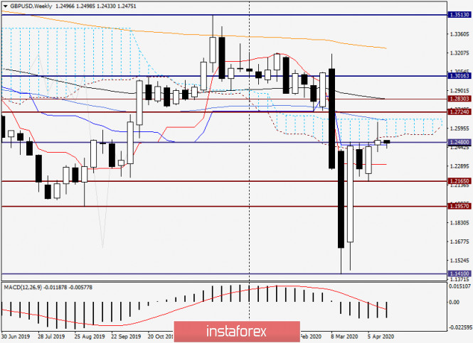 Анализ и прогноз по GBP/USD на 20 апреля 2020 годаИнстаФорекс - Instaforex, 5 лет назад Доброго времени суток, уважаемые трейдеры! Как уже отмечалось в предыдущей сегодняшней статье по eur/usd, на прошлой неделе основные валюты торговались смешано по отношению к доллару США. В частности, валютная пара GBP/USD немного подросла, но вопрос относительно дальнейшего направления котировки остаётся открытым. Более подробно поговорим об этом в технической части обзора. Пока же коротко о злополучном коронавирусе, который продолжает своё смертоносное шествие по миру. В Великобритании насчитывается уже более 121 000 инфицированных COVID-19, а количество летальных исходов исчисляется 16 тысячами. На этом фоне ведущие мировые Центробанки предпринимают все возможные меры, в частности, они касаются предоставления дешёвых кредитов и обеспечения ликвидности. Не прекращается работа специалистов и над разработкой вакцины против нового типа коронавируса. Так, в Соединённом Королевстве начнётся производство новых антивирусных препаратов, которые ещё только предстоит применить для широкого тестирования. В Соединённых Штатах Америки специалисты-вирусологи также работают над созданием вакцины против COVID-19, в то время как президент Трамп призывает население пройти тестирование на коронавирус. Учитывая, что экономический календарь сегодня практически пуст, основное внимание уделим технической картине, которая складывается по валютной паре фунт/доллар. Weekly Несмотря на незначительный рост «британца» по отношению к доллару США, ситуация на недельном графике остаётся крайне неопределённой. На это указывает последняя свеча с более длинной верхней тенью и маленьким бычьим телом. Впрочем, здесь есть свои плюсы и минусы. К плюсам можно отнести факт закрытия торгов 13-17 апреля выше линии Киджун индикатора Ишимоку, а также уровня сопротивления 1.2480. Подъём котировки к отметке 1.2645 и неспособность удержаться на достигнутых высотах указывает на слабость быков по фунту. Им даже не удалось закрыть недельные торги в пределах облака Ишимоку, что также не способствует восходящим перспективам британской валюты. Теперь для подтверждения роста игрокам на повышение курса нужно не только переписывать предыдущие максимумы на 1.2645, но и выводить цену вверх из облака Ишимоку. При выполнении этой миссии предвижу серьёзные проблемы, так как прямо над верхней границей облака пролегает 50 простая скользящая средняя, которая будет выполнять свою функцию в качестве сопротивления. К тому же отметка 1.2660, как уже неоднократно отмечалось ранее, достаточно сильна, чтобы оказать самое непосредственное влияние на цену и развернуть её вниз. Медведям для реализации своих планов необходимо продавить отметку 1.2305, где проходит линия Тенкан, после чего пробить уровень поддержки 1.2165, где были показаны минимальные значения позапрошлой недели. Стоит отметить, что задачи у противоборствующих сторон не из лёгких, и для их решения, возможно, появится серьёзный драйвер. Завтра будут опубликованы данные по рынку труда Великобритании, которые, вполне вероятно, и станут катализатором для определения ценовой динамики gbp/usd. Daily На этом таймфрейме видим, что фунт выполнил глубокую коррекцию к уровню 61.8 фибо от падения 1.3199-1.1411 и встретил сопротивление у 50 простой и 89 экспоненциальной скользящих средних, пройти к