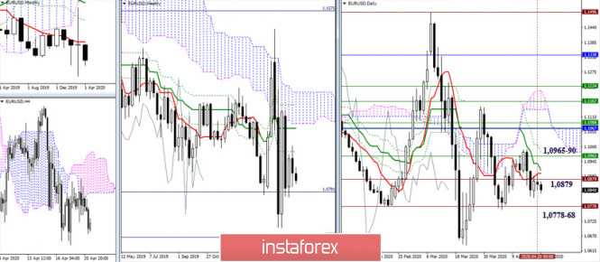 EUR/USD и GBP/USD 21 апреля – рекомендации технического анализаИнстаФорекс - Instaforex, 5 лет назад EUR/USD и GBP/USD 21 апреля – рекомендации технического анализа Экономический календарь (время московское) Среди событий в сегодняшнем экономическом календаре можно выделить публикацию данных об экономических настроениях в Германии (12:00) и о продажах на вторичном рынке жилья в США (17:00). EUR/USD В прошлые сутки не наблюдалось результативного движения. Пара осталась в зоне притяжения и влияния 1,0901 – 1,0879 (дневной Тенкан + исторический уровень). В сложившейся ситуации преобладает неопределённость, с небольшим перевесом в пользу медведей. Понижательные ориентиры можно отметить на 1,0812 (минимум прошлой недели) – 1,0778-68 (исторический уровень + минимальный экстремум). Закрепление выше уровней (1,0901-1,0879) может послужить усилению бычьих настроений. Ближайшим ориентиром для игроков на повышение в этом случае будет служить район сопротивлений 1,0965-90 (Фибо Киджуны дневной и недельный + максимальный экстремум). Несмотря на отсутствие направленного движения, основное преимущество, обусловленное расположением ниже ключевых уровней младших таймов и предпочтениями технических индикаторов, сохраняется на стороне игроков на понижение. Поддержки классических Пивот-уровней расположены сегодня на 1,0810 (S2) и 1,0780 (S3). Для изменения действующего баланса сил и появления повышательных перспектив евро нужно сегодня подняться и закрепиться выше ключевых сопротивлений Н1, которые в настоящий момент находятся на 1,0866 (центральный Пивот-уровень) и 1,0890 (недельная долгосрочная тенденция). GBP/USD Пара по-прежнему подвержена влиянию и притяжению зоны скопления уровней 1,2540 – 1,2450 (месячный Тенкан + недельный Киджун и Сенкоу Спан А + месячный Фибо Киджун + дневной Тенкан), поэтому неопределенность и раздумья доминируют. Тем не менее, прошлые сутки игрокам на понижение удалось закрыть ниже зоны, что увеличило их шансы на продолжение снижения. Последующие поддержки сегодня можно отметить на 1,2305 (недельный Тенкан) – 1,2213-1,2175 (недельный Фибо Киджун + дневной Фибо Киджун) – 1,2029 (дневной Киджун). Перемены настроений и предпочтений возможны при надёжном закреплении над зоной притяжения 1,2540-1,2450. На младших таймах игроки на понижение подтвердили сегодня своё преимущество, обозначив новый минимум. При продолжении снижения поддержками внутри являются классические Пивот-уровни, расположенные сегодня на 1,2368 (S2) и 1,2321 (S3). В случае торможения и развития восходящей коррекции основное значение на Н1 будут иметь ключевые сопротивления, отвечающие за распределение преимуществ. На текущий момент данные уровни расположены на 1,2452 (центральный Пивот-уровень) и 1,2498 (недельная долгосрочная тенденция). Ichimoku Kinko Hyo (9.26.52), Pivot Points (классические), Moving Avarage (120) Материал предоставлен компанией InstaForex - www.instaforex.com |