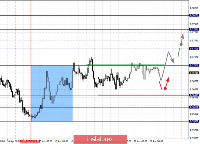 Фрактальный анализ по основным валютным парам на 22 апреляИнстаФорекс - Instaforex, 5 лет назад Здравствуйте, уважаемые коллеги. По паре Евро/Доллар цена пока находится в зоне начальных условий для нисходящего цикла от 14 апреля, уровень 1.0915 ключевая поддержка. По паре Фунт/Доллар мы расширили потенциал для нисходящего движения до уровня 1.2123, уровень 1.2391 ключевая поддержка. По паре Доллар/Франк следим за восходящей структурой от 14 апреля, уровень 0.9706 ключевое сопротивление, уровень 0.9644 ключевая поддержка. По паре Доллар/Иена возобновление движения кверху возможно после пробоя 107.81, уровень 107.19 ключевая поддержка. По паре Евро/Иена цена находится в корректировочной зоне от нисходящей структуры, уровень 117.44 ключевая поддержка для низа. По паре Фунт/Иена следим за развитием нисходящего цикла от 14 апреля, уровень 132.00 ключевое сопротивление для низа, уровень 133.13 ключевая поддержка. Прогноз на 22 апреля: Аналитический обзор валютных пар в масштабе Н1: По паре Евро/Доллар ключевыми уровнями в масштабе Н1 являются: 1.0994, 1.0945, 1.0915, 1.0890, 1.0845, 1.0804, 1.0753 и 1.0718. Здесь мы продолжаем следить за развитием начальных условий для нисходящего цикла от 14 апреля. Краткосрочное нисходящее движение ожидаем в диапазоне 1.0845 – 1.0804. Пробой уровня 1.0804 должен сопровождаться выраженным нисходящим движением, здесь цель – 1.0753. Потенциальным значением для нисходящей тенденции считаем уровень 1.0718, по достижении которого ожидаем консолидацию, а также откат кверху. Краткосрочное восходящее движение возможно в диапазоне 1.0890 – 1.0915, пробой последнего значения приведет к углубленной коррекции, здесь цель – 1.0945, этот уровень является ключевой поддержкой для нисходящей структуры, его проход ценой будет располагать к формированию начальных условий для верха, здесь потенциальная цель – 1.0994. Основная тенденция – начальные условия для нисходящего цикла от 14 апреля Торговые рекомендации: Buy: 1.0890 Take profit: 1.0913 Buy: 1.0920 Take profit: 1.0945 Sell: 1.0845 Take profit: 1.0808 Sell: 1.0800 Take profit: 1.0755 По паре Фунт/Доллар ключевыми уровнями в масштабе Н1 являются: 1.2455, 1.2391, 1.2353, 1.2286, 1.2234, 1.2163 и 1.2123. Здесь мы следим за развитием нисходящей структуры от 14 апреля. Краткосрочное нисходящее движение ожидаем в диапазоне 1.2286 – 1.2234, пробой последнего значения приведет к развитию выраженного движения, здесь цель – 1.2163. Потенциальным значением для низа считаем уровень 1.2123, по достижении которого ожидаем консолидацию, а также откат кверху. Краткосрочное восходящее движение возможно в диапазоне 1.2353 – 1.2391, пробой последнего значения приведет к углубленной коррекции, здесь цель – 1.2455, этот уровень является ключевой поддержкой для нисходящей структуры. Основная тенденция – нисходящий цикл от 14 апреля. Торговые рекомендации: Buy: 1.2353 Take profit: 1.2390 Buy: 1.2393 Take profit: 1.2455 Sell: 1.2280 Take profit: 1.2240 Sell: 1.2230 Take profit: 1.2165 По паре Доллар/Франк ключевыми уровнями в масштабе Н1 являются: 0.9810, 0.9781, 0.9740, 0.9706, 0.9644, 0.9619, 0.9590 и 0.9530. Здесь мы следим за формированием начальных условий для восходящего цикла от 14 апреля. Продолжения движения кверху ожидаем после пробоя 0.9706, в данном случае цель – 0.9740, возле этого уровня консолидация, его проход ценой будет располагать к развитию выраженного восходящего движения, в данном случае цель – 0.9781. Потенциальным значением для верха считаем уровень 0.9810, по достижении которого ожидаем консолидацию, а также откат книзу. Краткосрочное 