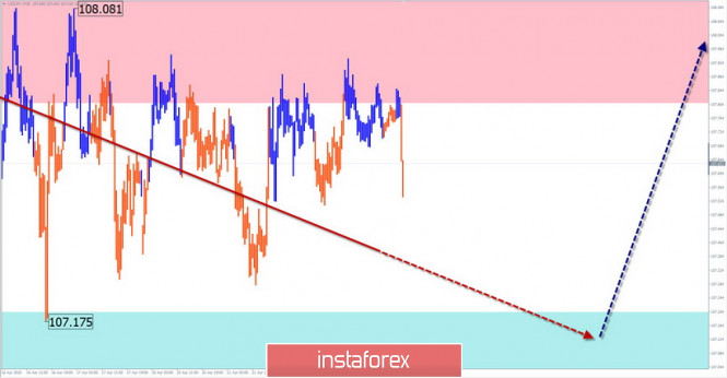 Упрощенный волновой анализ GBP/USD и USD/JPY на 23 апреляИнстаФорекс - Instaforex, 5 лет назад GBP/USD Анализ: Тренд британского фунта стерлингов держит вектор на север ценового графика. Задает основной курс волна от 18 марта. В ней в последнюю неделю развивается коррекция. Она удлинилась вниз до следующего зоны потенциального разворота. Ценовой подъем последних двух дней может быть началом разворотной конструкции. Прогноз: Сегодня ценовые движения на рынке ожидаются между ближайшими встречными зонами. В случае подтверждение разворота к концу дня можно ждать начала активного ценового подъема. При этом не исключен кратковременный прокол нижней границы поддержки. Зоны потенциального разворота Сопротивление: - 1.2350/1.2380 Поддержка: - 1.2280/1.2250 Рекомендации: Торговля фунтом сегодня возможна только при внутридневном стиле. До появления сигналов разворота актуальны будут продажи пары. При подтверждении смены курса рекомендуется сменить направление открытых позиций. USD/JPY Анализ: Основное направление движения японской валюты с 9 марта задает восходящая волна. Весь прошедший месячный период месяц цена корректировалась, образуя на графике нисходящий треугольник. Волна вошла в заключительную фазу. Прогноз: Сегодня на рынке пары ожидается перемещение курса пары в узком боковом коридоре, между встречными зонами. На европейской сессии ожидается нисходящей вектор движения. К концу дня можно ждать смену курса и начало встречного ценового подъема. Зоны потенциального разворота Сопротивление: - 107.80/108.10 Поддержка: - 107.20/106.90 Рекомендации: Торговля на рынке пары сегодня возможна только в рамках отдельных сессий. До появления сигналов разворота в приоритете продажи пары. Торговый лот разумней снизить. Пояснения: В упрощенном волновом анализе (УВА) волны состоят из 3 частей (А-В-С). Анализируется последняя незавершенная волна. Сплошным фоном стрелок показана сформированная структура, пунктирным - ожидаемые движения. Внимание: Волновой алгоритм не учитывает продолжительность движений инструмента по времени! Материал предоставлен компанией InstaForex - www.instaforex.com |