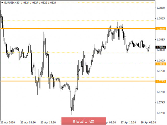 Горящий прогноз по EUR/USD на 28.04.2020 и торговая рекомендацияИнстаФорекс - Instaforex, 5 лет назад В отсутствии каких-либо общеевропейских или американских макроэкономических данных, рынок, по сути дела, стоял на месте. У него элементарно не было никаких ориентиров. Даже новость о том, что общее число подтвержденных случаев заражения коронавирусом превысило 3 млн., никак не впечатлила рынок. Отчасти, из-за того, что рынки уже начинают уставать от этой темы. Более того, всех гораздо больше волнует масштаб экономических последствий, а также то, как долго мировая экономика будет выбираться из рецессии. Кроме того, обнадеживают планы многих стран по постепенному снятию ограничений, введенных как раз для сдерживания распространения эпидемии коронавируса. Вместе с тем, все очевиднее становится та простая истина, что рецессия мировой экономики может оказаться самой глубокой за последние несколько десятилетий. Это прекрасно видно по тому кошмару, который творится на рынках труда, практически всех без исключения стран мира. Например во Франции, число заявок на пособия по безработице выросло на рекордные 243 тыс. Прогнозировался рост на 150 тыс., что и так примерно в два раза больше, нежели рекордное значение, зафиксированное в 2009 году. Поистине сумасшедший рост безработицы говорит не только о том, что спад мировой экономики окажется невероятно глубоким. Скорее это указывает на то, что выбираться из этой ямы, мировая экономика будет несколько лет. Изменение числа заявок на пособия по безработице (Франция): Сегодня же будут опубликованы данные по уровню безработицы в Испании, которая должна вырасти с 13,8% до 15,5%. Это конечно далеко не рекордное значение, да и темпы роста не так уж чтобы впечатляли, так как в Испании видали рост безработицы и по внушительней. Однако, рынок труда в Испании все никак не может оправиться от тех потрясений, которые ему пришлось испытать в 2009 году. Иными словами, Испания является наглядной демонстрацией того, что мировая экономика, по сей день, не решила те проблемы, которые стали причиной кризиса 2008 - 2009 годов. Правда рынок проигнорирует эти данные, как он проигнорировал вчера данные из Франции. Уровень безработицы (Испания): Но вот уже с открытия американской сессии рынок может несколько оживиться. Как не крути, но данные по оптовым запасам в Соединенных Штатах, являются несколько более значимыми, нежели уровень безработицы в Испании. И даже важнее, чем заявки на пособия по безработице во Франции. Так вот, эти самые запасы могут вырасти на 1,0%. Подобное колебание не является каким-то уж из ряда вон выходящим. Бывало и больше. Однако, на фоне беспрецедентного роста безработицы, затоваривание складов автоматически указывает на то, что промышленность будет восстанавливаться очень и очень долго. А это будет замедлять общий процесс восстановления экономики. Оптовые запасы (Соединенные Штаты): С точки зрения технического анализа мы видим коррекционный ход от локального минимума 1,0727, где котировке удалось вернуться в район ранее пройденного уровня 1,0850. Последующее колебание происходила виде концентрации торговых сил на уровне 1,0850, где активность в разы была снижена. В плане общего рассмотрения торгового графика, дневной период, виден стабильный нисходящий настрой, где котировка направлена в сторону минимума 23 марта - 1,0636. Можно п