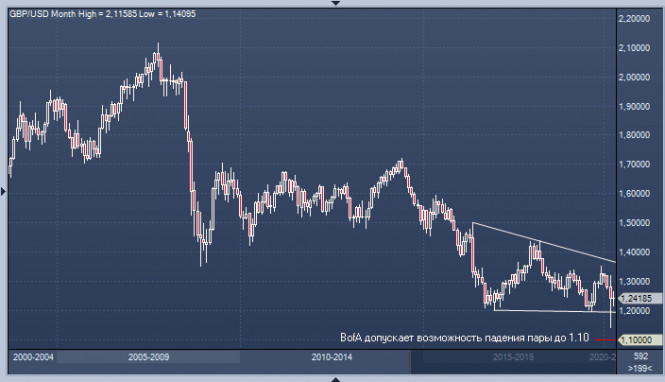 Фунт: главное – обойти доллар в паре GBP/USDИнстаФорекс - Instaforex, 5 лет назад Важной задачей, стоящей сейчас перед британской валютой, является укрепление своих позиций, в частности против гринбека. Эксперты опасаются, что у «британца» не хватит сил противостоять «американцу» на длительной дистанции, хотя не исключают краткосрочного подъема стерлинга. По оценкам аналитиков, в данный момент фунт пытается противостоять депрессии, в которую его вогнала сложная ситуация с усилением пандемии коронавируса COVID-19 и увеличением числа заболевших и умерших британцев. В паре GBP/USD обстоятельства играют против стерлинга и на стороне доллара, отмечают специалисты. Гринбек по-прежнему удерживает статус актива-убежища, чем и привлекает инвесторов. Британской валюте очень сложно противостоять своему сопернику. Утром во вторник, 28 апреля, пара GBP/USD находилась на отметке 1,2421, а в дальнейшем соскользнула к 1,2414–1,2415, но сумела подняться. Валютные стратеги Bank of America опасаются усиления депрессивных настроений стерлинга. Аналитики отмечают высокие риски обрушения фунта по отношению к многолетним минимумам против USD. Они обращают внимание на явные «медвежьи» тенденции пары GBP/USD, рекомендуя продавать «британца» на росте. По наблюдениям специалистов, «быкам» по фунту сейчас не слишком выгодны покупки валюты, особенно после длительного коррекционного укрепления GBP. При этом «медведи» не торопятся с продажами, и в итоге получается замкнутый круг. В Bank of America ожидают очередного всплеска спроса на доллар, на фоне которого пара GBP/USD обрушится до 1,1000. Подножку британской валюте подставила и текущая макростатистика, демонстрирующая сложное экономическое положение в стране. В конце минувшей недели, несмотря на мрачные отчеты, стерлинг все-таки укрепился. Он увеличился на 0,3%, до 1,2358 по отношению к гринбеку, изо всех сил удерживаясь на завоеванных позициях. Это оказалось непросто: негативные данные камнем тянули на дно. Напомним, на прошлой неделе в Великобритании вышли крайне разочаровывающие экономические данные. Например, индекс IHS Markit/CIPS Flash UK для менеджеров по закупкам (PMI) обрушился до очередного рекордного минимума в 12,9 пункта. Напомним, в марте этого года он достигал солидных 36 пунктов. Текущий обвал разбил в пух и прах прогнозы экспертов, ожидавших показателя на уровне 31,4. Другим поставщиком негативной информации как для «британца», так и для национальной экономики стали сведения по розничным продажам за март 2020 года, опубликованные в минувшую пятницу. Согласно отчету, данные индикаторы потеряли от 4,1% до 5,8% г/г. Не добавляет оптимизма и возможное падение розничной торговли, показатели которой предоставит Конфедерация британских промышленников (CBI). По предварительным прогнозам, она может просесть до -40%. Сложившаяся ситуация не способствует росту фунта, резюмируют аналитики. Дополнительным катализатором ослабления GBP становится нарастающая угроза «жесткого» Brexit. Напомним, ранее Лондон отказался от продления сроков так называемого «переходного периода», необходимого для плавной адаптации британской экономики в новых условиях. По предварительным данным, окончательный разрыв между Соединенным Королевством и евроблоком состоится 31 декабря 2020 года. Борис Джонсон, премьер-министр Великобритании, уверен, что никакие обстоятельства, в том числе непр