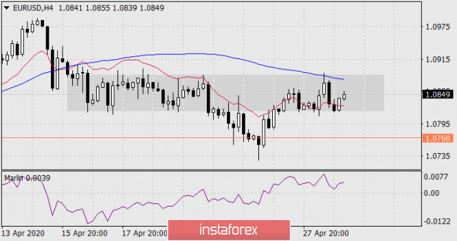Прогноз по EUR/USD на 29 апреля 2020 годаИнстаФорекс - Instaforex, 5 лет назад EUR/USD Потенциал данного треугольника всё же понижающийся, так как основную часть времени линия находится на территории отрицательных значений. Сигналом к существенному снижению евро станет уход цены под минимум 6 апреля 1.0768, откроется цель по линии ценового канала 1.0605.