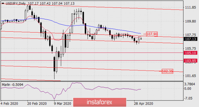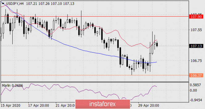 Прогноз по USD/JPY на 1 мая 2020 годаИнстаФорекс - Instaforex, 5 лет назад USD/JPY Верхней границей блуждающей йены служит линия Крузенштерна (107.90). Возврат к понижающемуся сценарию произойдёт после ухода цены под минимум 29 апреля (106.37).