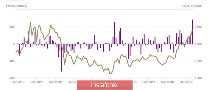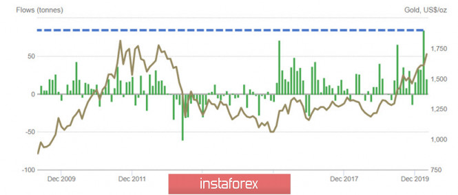 Золото (Gold) — продолжение тренда или разворот?ИнстаФорекс - Instaforex, 5 лет назад Здравствуйте. После бурного роста марта — апреля текущего года, котировки золота (Gold) замерли в диапазоне, так и не сумев преодолеть уровень 1750 долларов за тройскую унцию, как бы раздумывая над тем, а не вернуться ли им к значениям $1600, раз уж на рынке царит такая блажь. Это хорошо видно по настроению инвесторов, которые в частных разговорах говорят примерно следующее: - «Цены находятся достаточно высоко, и сейчас мы ждем, когда они опустятся чтобы получить выгодную точку входа и воспользоваться возможностью для покупок». Другими словами многие хотят купить золото, но считают текущую цену слишком высокой и не очень выгодной для того чтобы войти в рынок - здесь и сейчас. Между тем цена вопроса составляет всего пять — десять процентов от стоимости, и для долгосрочного инвестора это не должно создавать препятствий, хотя и для него более низкие цены являются привлекательными. Другое дело трейдеры торгующие золотом в терминалах компании InstaForex, для них неудачная точка входа может оказаться фатальной, и в этой связи необходимо разобрать долгосрочные и краткосрочные тенденции драгоценного металла. По моим личным, многолетним наблюдениям рост цены золота в первую очередь обусловлен инвестиционным спросом в США и Европе, и как показывают последние данные, в апреле 2020 года, инвесторы из Северной Америки купили через биржевые торговые фонды 144 тонны золота, что стало рекордным значением с февраля 2009 года. Тогда инвесторы из США приобрели 183 тонны, что в дальнейшем стало мощнейшим импульсом для цены, задав для золота повышающийся тренд длинною в два с половиной года (рис.1). Рис.1: Цена золота и ежемесячный инвестиционный спрос североамериканских инвесторов Несмотря на падение цены золота в марте 2020 года, связанное с глобальным недостатком ликвидности, по состоянию на апрель, инвестиции в производные биржевые инструменты — ЕТF, вкладывающие в золото, выросли за год на 13.8% по всему миру. В лидерах оказалась Азия с приростом в 16.9%, но удельный вес этих инвестиций относительно невысок. В количественном выражении, на 272.7 тонны, больше всего выросли инвестиции именно в США, добавив +15.7%. По сути, на фоне коронавирусной инфекции спрос на золото в в Северной Америке оказался взрывным. На втором месте расположились инвесторы из Европы, которые приобрели 81.7 тонн золота, инвестируя через биржевые торговые фонды (ETF). При этом за сухими цифрами отчётности стоит очень интересная зависимость, на которую стоит обратить самое пристальное внимание: - инвесторы активизируются тогда, когда у них сужаются возможности для инвестиций в другие сектора и ценные бумаги. Так, например, активность инвесторов из Европы начала расти вместе со снижением ставки ЕЦБ до нулевых значений в 2015-2016 годах. В марте 2020 года европейские инвесторы добавили в ETF рекордные 83.4 тонны золота (рис.2). С января 2016 по январь 2020 года инвестиции европейских инвесторов в биржевые торговые фонды ежегодно прибавляли около 19%. В то время как инвесторы из США были менее активны, добавляя в закрома ETF всего около 7.5% в год, причем с ростом ставки ФРС объемы инвестиционных покупок американцев, снижались. рис.2: Активность европейских инвесторов Таким образом, можно предположить, что с учетом перспектив динамики ключевых ставок