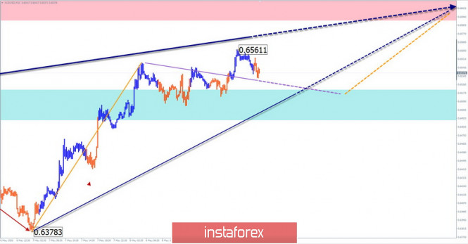 Упрощенный волновой анализ EUR/USD, AUD/USD, GBP/JPY на 11 маяИнстаФорекс - Instaforex, 5 лет назад EUR/USD Анализ: На графике европейского мажора с 20 марта формируется восходящая волна. За прошедшие полтора месяца цена двигалась преимущественно в широком флетовом ценовом коридоре. Анализ структуры волны показывает, что начавшееся 1 мая снижение может продолжить коррекцию (В). Прогноз: Сегодня ожидается общий боковой настрой движения евро. В первой половине дня вероятно завершение восходящего участка и формирование разворота. Вероятный диапазон суточного хода снизу ограничивает расчетная поддержка. Зоны потенциального разворота Сопротивление: - 1.0870/1.0900 Поддержка: - 1.0800/1.0770 Рекомендации: Покупки евро сегодня могут быть рискованными из-за ограниченного потенциала ожидаемого роста пары. Основное внимание рекомендуется уделить поиску сигналов продажи. До смены курса разумней воздержаться от торговли. AUD/USD Анализ: Восходящая волна австралийского доллара от 19 марта меняет направление среднесрочного тренда. Масштаб движения приблизился к уровню дневного таймфрейма. Последний участок по тренду стартовал 4 мая. Цена продавила промежуточное сопротивление, начав коррекцию мелкого масштаба. Прогноз: Европейская сессия сегодня, скорее всего, станет медвежьей. Снижение цены дальше поддержки не ожидается. Во второй половине дня можно рассчитывать на смену курса и возобновление ценового подъема. Зоны потенциального разворота Сопротивление: - 0.6590/0.6620 Поддержка: - 0.6520/0.6490 Рекомендации: В первой половине дня сегодня возможны кратковременные продажи сниженным лотом. В районе поддержки рекомендуется завершить все позиции и начать отслеживать сигналы разворота для покупки инструмента. GBP/JPY Анализ: В восходящей волне от 18 марта весь прошедший месяц цена кросса преимущественно флетует, образуя коррекцию. Ее завершающая часть стартовала 30 апреля. В нем не хватает заключительного участка. Цена достигла зоны потенциального разворота. Прогноз: После вероятной попытки давления на зону сопротивления сегодня можно ждать разворот и начало ценового снижения. Нижнюю границу ожидаемого ценового коридора показывает зона поддержки. Зоны потенциального разворота Сопротивление: - 132.90/133.20 Поддержка: - 132.00/131.70 Рекомендации: Покупки кросса сегодня бесперспективны. Рекомендуется отслеживать сигналы разворота для поиска точек продажи пары. Пояснения: В упрощенном волновом анализе (УВА) волны состоят из 3 частей (А-В-С). Анализируется последняя незавершенная волна. Сплошным фоном стрелок показана сформированная структура, пунктирным - ожидаемые движения. Внимание: Волновой алгоритм не учитывает продолжительность движений инструмента по времени! Материал предоставлен компанией InstaForex - www.instaforex.com |