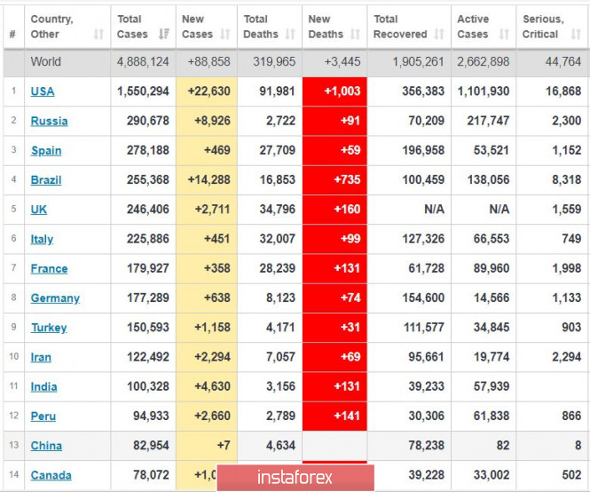 Дневник трейдера 19.05.2020. Коронавирус в России: стабилизация. Рубль: пора продаватьИнстаФорекс - Instaforex, 5 лет назад Выше график суточного прироста новых случаев инфицирования коронавирусом в Москве. Поскольку на графике нет масштаба, к сожалению, даю последнее значение (последний столбик) +3545. Максимумы примерно +6000. Видим совершенно ясный слом тенденции быстрого роста. Если характер графика не изменится в ближайшие дни - то уже в конце мая будем иметь прохождение пика эпидемии - когда график находящихся на лечении пройдет максимум и повернет вниз - когда число новых госпитализированных станет меньше, чем выписанных больных. Вот этот график - график числа "активных случаев" в Москве - видно, что он готов нарисовать максимум и повернуться вниз - и так и будет, если не будет новой волны роста новых случаев выше +5000 ( сейчас +3500). Оценить место России в пандемии в текущий момент в мире можно на графике ниже: Увы, мы видим, что Россия твёрдо заняла второе место в мире по числу зараженных - после своего "заклятого партнера" США - и только Бразилия с огромным суточным приростом почти в +15 тысяч инфицированных может обогнать Россию. Картинка на утро 19 мая. Рубль: Пора покупать доллар и евро. Как видим, рубль снова укрепляется - но совсем незначительно. У укрепления рубля две причины: рост цен на нефть - Брент стоит сейчас 35 долл/баррель - это рост практически +100% от минимумов 20-х чисел апреля, и это огромный позитив для российской нефтяной отрасли и бюджета России. Второй фактор - продажа валюты ЦБ - фактически интервенции в поддержку рубля - по неофициальной информации, поддержка рубля будет до голосования по поправкам в Конституцию, что ожидается 24 июня. Всё же рост нефти не может не смениться падением уже довольно скоро: глава ФРС дал прогноз, что восстановление экономики будет медленным, спрос на нефть будет расти медленно, на рынке большой избыток нефти. Доллар и евро за рубли нужно покупать прямо сейчас. Материал предоставлен компанией InstaForex - www.instaforex.com |