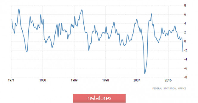 Горящий прогноз по EUR/USD на 25.05.2020 и торговая рекомендацияИнстаФорекс - Instaforex, 5 лет назад По сути дела, вся пятничная активность уложилось в короткий промежуток времени, после чего рынок упорно стоял на месте. Причем на все про все хватило чуть менее часа. Но самое забавное, что это самое движение происходило в неком информационном вакууме, так как в это время вообще никаких новостей не выходило. Вместе с тем само ослабление единой европейской валюты четко укладывается в общую логику тенденции на укрепление доллара. Это явный долгосрочный тренд, длящийся уже не первый год. Иногда определенные события приводят к некоторому укреплению единой европейской валюты, но лишь на непродолжительное время. Забавно, но в то время, когда и происходило все основное движение, публиковались данные по производственным заказам в Испании. Однако эти данные никогда не оказывали какого-либо влияния на единую европейскую валюту. Конечно, можно предположить, что в условиях полного отсутствия хоть каких-то новостей участники рынка цеплялись хоть за что-нибудь. Правда, это крайне маловероятно. Сам данный показатель имеет крайне слабое влияние на рынок. Тем более что испанская статистика вообще рынком не берется в расчет. Так что даже если даже рынок действительно и среагировал на эти данные, то это буквально единичный подобный случай. Так что стоит отметить, что темпы спада производственных заказов ускорились с -0,1% до -16,4%. Так что о каком-то восстановлении промышленного производства в Испании в ближайшее время говорить не приходится. И речь идет о четвертой экономике зоны евро. Производственные заказы (Испания): Сегодня же в Соединенных Штатах выходной день, так что на рынке будет абсолютное затишье. Тем не менее в Германии были опубликованы итоговые данные по ВВП за первый квартал, которые совпали с предварительными оценками. Итак, по итогам первого квартала крупнейшая экономика зоны евро просела на 2,3%. И если мы возьмем в расчет тот факт, что ограничительные меры из-за коронавируса начали вводить лишь в середине марта, то есть в самом конце квартала, то становится понятно, что по итогам второго квартала спад будет еще более глубоким. Однако никакой реакции рынка нет. Это и понятно, так как в Соединенных Штатах никто не работает. Кроме того, рынок давно уже учел спад экономики Германии, еще в момент публикации предварительных оценок. Темпы роста ВВП (Германия): С точки зрения технического анализа мы видим обратный ход от психологического уровня 1,1000, где котировка уже зафиксироваться ниже значения 1,0900. Фактически имеющийся ход относится к восстановительному процессу, который направлен в сторону опоры 1,0775. Стоит не забывать, что на рынке уже как полтора месяца имеет место боковой коридор 1,0775/1,1000, где последовательно развивается котировка. В плане общего рассмотрения торгового графика, дневной период, виден тот самый боковой коридор, но стоит учесть, что он находится в структуре глобального нисходящего тренда. Можно предположить, что застой в рамках 1,0885/1,0910 сохранится некоторое время, где основной стратегией считается работа на пробой установленных границ. Стоит учесть, что заданный нисходящий такт от уровня 1,1000 до сих пор сохраняется на рынке, а это значит, что шанс дальнейшего спуска имеется. Конкретизирукм все вышесказанное в торговые сигналы: - П