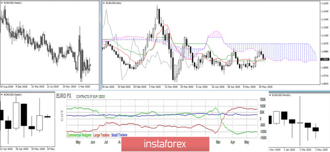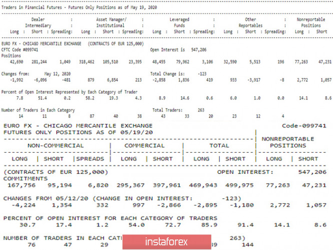 Последний отчет СОТ (Commitments of Traders). Недельные перспективы для EUR/USDИнстаФорекс - Instaforex, 5 лет назад Последний отчет СОТ (Commitments of Traders). Недельные перспективы для EUR/USD Последний опубликованный отчет об обязательствах трейдеров (Commitments of Traders от 19.05.20.) не содержит существенных изменений в показателях, которые были бы способны привести к изменению в настроениях рынка. Тем не менее открытый интерес к евро (547,206) сохраняется на достаточно высоком уровне. Данная денежная единица по-прежнему пользуется более высоким спросом среди остальных валют. По статистике с евро сейчас работают 263 подотчетных участника биржи, и, несмотря на некоторый перевес в количестве трейдеров предпочитающих позиции long (long 76 и 104 – short 47 и 77), они почти поровну разделились между направлениями движения по количеству контрактов (469,943 и 499,975), а значит и денежных средств. Группа крупных игроков (Non-Commercial), отвечающая за трендовые предпочтения, имеет сейчас перевес в контрактах long (167,756 против 95,194), а хеджеры (Commercials), предвещающие изменения настроений, сохраняют доминирование позиций short (397,961 против 295,367). Такая ситуация наблюдается уже не первую неделю, при том, как видно из отчета, и те и другие участники биржи на прошлой неделе сократили свои преобладающие позиции. Более подробный финансовый отчет показывает, что первая наиболее показательная группа участников рынка (брокеры, дилеры) в настоящий момент в значительной степени поддерживает игроков на повышение (281,244 против 42,690). Данный показатель также имеет ослабляющий фактор, так как такой интерес наблюдается уже не первую неделю, при этом участники рынка больше не наращивают свои позиции, а, как видно из отчета за последнюю неделю, они, наоборот, сократили их, бычьи позиции в большей степени (6,096 против 1,992). Основной вывод На текущей неделе ситуация на рынке, скорее всего, сохранит прежние тенденции. Изменить её будут стремиться как игроки на повышение, так и игроки на понижение. Подстраховка крупных денег в сложившейся ситуации в большей степени сохраняется на стороне игроков на повышение. Техническая картина происходящего подтверждает нереализованность финансовых отчетных перевесов последнего времени. На неделях наблюдается консолидация, а на дневном графике боковое движение. Мартовское перекрестие позиций двух крупнейших групп участников рынка (Non-Commercial и Commercials) на графике отчетов СОТ (Commitments of Traders) сформировало высокую Волну при свечном анализе. Тем самым удалось остановить и сдержать ситуацию от дальнейшего медвежьего падения. Сейчас обе основные группы трейдеров нашли некоторый баланс в своём противостоянии и заняли почти горизонтальную позицию на графике. Поэтому ожидать существенных перемен в движении в ближайшее время скорей всего не нужно. Центром притяжения бокового канала на дневном графике в настоящий момент является дневной крест Ишимоку (1,0907 – 1,0873 – 1,0839), верхней границей служит дневное облако и недельный Фибо Киджун (1,0965), роль нижней границы прекрасно выполняет историческая поддержка на 1,0778. На младших таймах перевес сил в момент анализа наблюдается на стороне игроков на понижение. Ключевые сопротивления концентрируют свои усилия в районе 1,0913-26 (центральный Пивот-уровень + недельная долгосрочная тенденция). Поддержки классических Пивот-уровней на Н1 расположены сегодня на 1,0873 – 1,0844 – 1,0804.