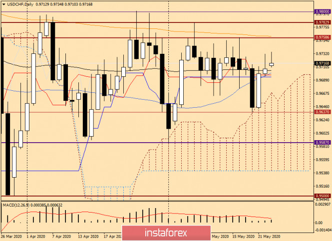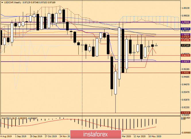 Технический анализ и прогноз по USD/CHF на 25 мая 2020 годаИнстаФорекс - Instaforex, 5 лет назад Здравствуйте, уважаемые коллеги! Сегодня разберём техническую картину по ещё одной основной валютной паре USD/CHF, и начнём с итогов завершившихся недельных торгов. Weekly По итогам торгов прошлой недели на соответствующем таймфрейме появилась свеча с огромной нижней тенью и маленьким медвежьим телом. Обычно такие свечи сигнализируют о нежелании рынка снижаться и предполагают последующий рост котировки. Как будет на этот раз, узнаем только после закрытия текущей недельной сессии. На данный момент пара уже успела подняться к 0.9735, но отступила и сейчас торгуется вблизи 0.9718. Перспективы дальнейшего ценового движения на этом таймфрейме выглядят следующим образом. Возобновление восходящей динамики отправит доллар/франк на тестирование прошлых максимумов 0.9758 с целью их переписи. Если данная задача окажется быкам по плечу, впоследствии им придётся столкнуться с очень сильным сопротивлением продавцов, которое проходит в ценовой зоне 0.9785-0.9805. В этой области проходят два технически сильных уровня поддержки, а также скопились используемые скользящие средние 50 МА, 200 ЕМА и 89 ЕМА. О нисходящих перспективах этого инструмента просигнализирует пробой линии Тенкан индикатора Ишимоку, на 0.9651, после чего будет ещё раз проверена прочность поддержка на 0.9637, где отмечены минимальные значения торгов прошлой пятидневки. Судя по последней недельной свече, с длинным хвостом, у пары больше шансов для движения в северном направлении, однако не стоит забывать о сильных обозначенных сопротивлениях. Daily На дневном графике ситуация не менее запутанная. После того как 21 мая пара не пожелала опускаться в пределы облака Ишимоку и продемонстрировала существенное укрепление, очень тяжело, но всё-таки преодолеваются Киджун, Тенкан, 50 МА и 89 ЕМА. Честно говоря, ранее предполагал, что usd/chf не удастся пройти вверх перечисленные преграды и курс развернётся на снижение. Однако этого пока не происходит. На мой взгляд, многое будет зависеть от способности пробить сопротивление продавцов вблизи 0.9760. Ситуация для игроков на повышение курса осложняется нахождением здесь 200-экспоненциальной скользящей средней, которая способна оказать достаточно сильное сопротивление попыткам пары продолжить восходящую динамику. Если пара снизится и закроет дневные торги под линией Киджун (0.9694), наверняка будет предпринята ещё одна попытка медведей опустить цену в пределы облака Ишимоку, верхняя граница которого проходит вблизи 0.9660. Закрепление в пределах облака усилит медвежьи настроения и даст повод для дальнейшего снижения в район 0.9637-0.9587. Н4 На этом графике пара пробила используемые скользящие средние, закрепилась над ними и теперь готовится дать откат к пробитым мувингам. Предлагаю понаблюдать за поведением цены в районе 0.9707-0.9696, и в случае возникновения здесь бычьих моделей свечного анализа открывать покупки с ближайшими целями в области 0.9735-0.9745. О продажах можно задуматься после появления разворотных медвежьих моделей в этой же ценовой зоне. Выше к открытию коротких позиций можно присмотреться после подъёма в район 0.9760-0.9780. На данный момент ситуация по паре USD/CHF воспринимается как неопределённая. Однако не стоит забывать, что в условиях пандемии COVID-19 доллар США пользуется повышенным с