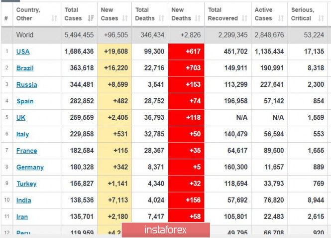 Дневник трейдера 25.05.2020. EURUSD, коронавирус в России, рубль. Неоправданный оптимизмИнстаФорекс - Instaforex, 5 лет назад В России просыпается оптимизм: Путин приказал коронавирусу отступить - и тот отступил. Наиболее оптимистично выглядит ситуация в Москве - на картинке выше суточный прирост по состоянию на 25 мая. Последний столбик 2500 новых случаев - резкий спад эпидемии очевиден. Картинка похожа на Нью-Йорк - где также пик эпидемии пройден достаточно давно. Для тех кто хочет оценить ситуацию в мире и позицию России: Видно, что Россию обошла Бразилия по приросту суточному и по общему числу зараженных. Россию критикуют за очень низкую смертность - подозревая занижение цифр - но главное, чтобы эпидемия отступила - все итоги позднее. Нефть поддерживает рубль - а нефть выросла вслед за рынком США. Инвесторы надеются на быстрое восстановление экономики США и Европы - но глава ФРС Пауэлл занимает консервативную позицию - предупреждая, что кризис будет долгим. Возможно, всеобщее отрезвление наступит позднее. Нефть: Видно, что нефть на максимумах с середины апреля. Это неадекватно фундаменту, поскольку запасы нефти очень велики и поставки на рынок больше спроса. Ждем падения. Укрепление рубля далее необоснованно. Рубль можно продавать, покупая доллары и евро по текущим ценам. EURUSD: Евро вернулся в диапазон, далее - или прорыв выше 1.0915 - или падение до 1.0850 и ниже. Мы пока держим покупки от 1.0855, стоп в безубытке. Наверх уровень для входа на прорыв 1.1000, вниз 1.0770. Материал предоставлен компанией InstaForex - www.instaforex.com |