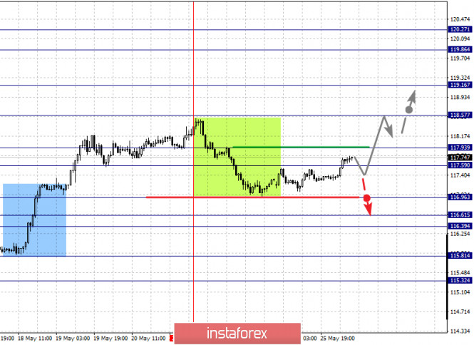 Фрактальный анализ по основным валютным парам на 26 маяИнстаФорекс - Instaforex, 5 лет назад Прогноз на 26 мая: Аналитический обзор валютных пар в масштабе Н1: По паре Евро/Доллар ключевыми уровнями в масштабе Н1 являются: 1.1009, 1.0961, 1.0935, 1.0912, 1.0876, 1.0836, 1.0789 и 1.0756. Здесь, цена оформила выраженный потенциал для нисходящего движения от 21 мая. Продолжения движения к низу, ожидаем после пробоя 1.0876, в данном случае цель – 1.0836, возле этого уровня консолидация. Пробой уровня 1.0836 приведет к выраженному движению, здесь цель – 1.0789. Потенциальным значением для низа, считаем уровень 1.0756, по достижении которого, ожидаем консолидацию, а также откат к верху. Краткосрочное восходящее движение, ожидаем в диапазоне 1.0912 – 1.0935, пробой последнего значения приведет к углубленной коррекции, здесь цель – 1.0961, этот уровень является ключевой поддержкой для нисходящей структуры. Основная тенденция – формирование потенциала для низа от 21 мая Торговые рекомендации: Buy: 1.0912 Take profit: 1.0933 Buy: 1.0936 Take profit: 1.0960 Sell: 1.0874 Take profit: 1.0840 Sell: 1.0834 Take profit: 1.0790 По паре Фунт/Доллар ключевыми уровнями в масштабе Н1 являются: 1.2361, 1.2297, 1.2241, 1.2208, 1.2143, 1.2101 и 1.2069. Здесь, цена вошла в равновесное состояние: восходящая структура от 15 мая, а также нисходящая структура от 19 мая. Развития нисходящего движения, ожидаем после пробоя 1.2143, в данном случае первая цель – 1.2101. Потенциальным значением для низа, пока считаем уровень 1.2069, по достижении которого, ожидаем консолидацию, а также откат к верху. Краткосрочное восходящее движение, возможно в диапазоне 1.2208 – 1.2241, пробой последнего значения будет располагать к формированию восходящей структуры, здесь первая потенциальная цель – 1.2297, до этого уровня ожидаем оформления локальных начальных условий. Основная тенденция – восходящая структура от 15 мая и нисходящая структура от 19 мая Торговые рекомендации: Buy: 1.2208 Take profit: 1.2240 Buy: 1.2244 Take profit: 1.2295 Sell: 1.2140 Take profit: 1.2103 Sell: 1.2100 Take profit: 1.2070 По паре Доллар/Франк ключевыми уровня в масштабе Н1 являются: 0.9806, 0.9782, 0.9762, 0.9734, 0.9724, 0.9702, 0.9689 и 0.9672. Здесь, мы следим за восходящей структурой от 20 мая. Продолжения движения к верху, ожидаем после прохода ценой шумового диапазона 0.9724 – 0.9734, в данном случае цель – 0.9762, в коридоре 0.9762 – 0.9782 краткосрочное восходящее движение, а также консолидация. Потенциальным значением для верха, считаем уровень 0.9806, по достижении этого уровня ожидаем откат к низу. Краткосрочное нисходящее движение, возможно в диапазоне 0.9702 – 0.9689, пробой последнего значения приведет к углубленной коррекции, здесь потенциальная цель – 0.9672, этот уровень является ключевой поддержкой для верха. Основная тенденция – восходящая структура от 20 мая Торговые рекомендации: Buy: 0.9734 Take profit: 0.9760 Buy: 0.9764 Take profit: 0.9780 Sell: 0.9702 Take profit: 0.9690 Sell: 0.9687 Take profit: 0.9674 По паре Доллар/Иена ключевыми уровнями в масштабе являются: 108.43, 108.31, 108.09, 107.91, 107.46, 107.24 и 106.77. Здесь, мы следим за развитием восходящей структуры от 14 мая, на текущий момент цена находится в корректировочной зоне и оформила выраженный потенциал для нисходящего движения от 19 мая. Краткосрочное восходящее движение, ожидаем в диапазоне 107.91 – 108.09, пробой последнего значения должен сопровождаться выраженным восходящим движением, в данном случае цель – 108.31. Потенциальным значением для верха, считаем уровень 108.45, по достижении которого, ожидаем консолидацию, а также откат к низу. Краткосрочное нисход