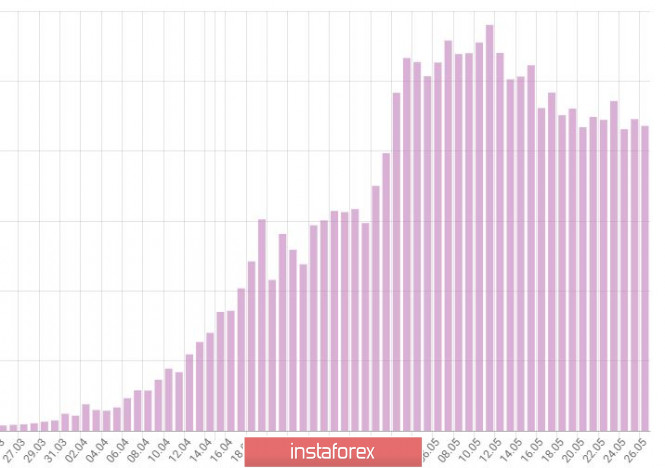 Дневник трейдера 26.05.2020. EURUSD. Covid19 в России; рубль, евроИнстаФорекс - Instaforex, 5 лет назад Это график общего числа зараженных и болеющих на 26 мая - по России. Это активные случаи - за минусом выздоровевших и умерших - сегодня заболело +9000 человек примерно, +13 тысяч выздоровело - ясно, что нагрузка на медицину снизилась на 4 тысячи больных - это видно как снижение на графике Это график суточного прироста новых случаев по России, +9000 примерно в сутки в последние дни. При этом в Москве резкое снижение ниже +3000 случаев в сутки - но общий график по России не падает так резко - то есть провинция пока растет, отставая от Москвы, - это естественно, так было и в США. Это общая картина в мире - на утро 26 мая - вы можете оценить ситуацию в России, сравнив с общемировой. Бросается в глаза очень низкая смертность в России - например, в очень успешно прошедшей Германии всего смертей 8400 при общем числе больных 180 тысяч - в России только 3600 умерших при 353 тысячах случаев. Вряд ли мы можем надеяться, что по всей России медицина работает значительно лучше, чем в Германии. Причина - разное определение причины смерти - в России намного чаще в случае смерти от коронавируса и другого заболевания (одновременно) указывают причиной смерти не коронавирус. Рубль пытается укрепляться на фоне выросших цен на нефть и при поддержке ЦБ, а также на фоне улучшения ситуации с пандемией и экономикой как в Европе, так и в США - но предел укрепления рубля, по моему мнению, достигнут. Сейчас очень хорошая цена для покупки долларов и евро за рубли. EURUSD: Новая попытка роста. Держим покупки от 1.0855, стоп на 1.0870. Возможны покупки от 1.0915. Продажи от 1.0869. Материал предоставлен компанией InstaForex - www.instaforex.com |
