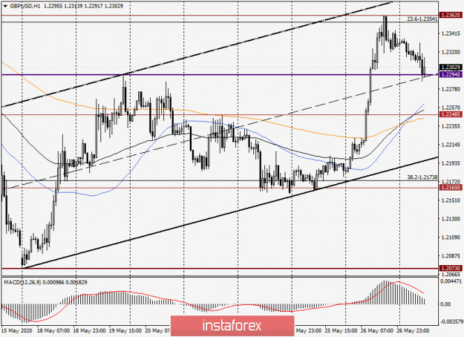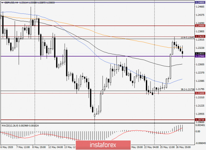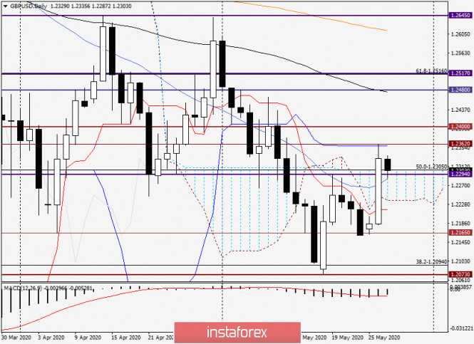 Анализ и прогноз по GBP/USD на 27 мая 2020 годаИнстаФорекс - Instaforex, 5 лет назад Доброго времени суток, уважаемые трейдеры! В отсутствие важных макроэкономических показателей из Великобритании и Соединённых Штатов Америки ценовая динамика валютной пары GBP/USD в основном определяется техническими факторами. В то же время стоит упомянуть и о тех событиях, которые запланированы на сегодня. Другое дело, будут ли они влиять на рыночные настроения. Уже не раз отмечалось, что в последнее время участники рынка не обращают внимание даже на столь важные релизы, каковыми являются данные по рынку труда США и протоколы заседания Комитета по открытым рынкам (FOMC) ФРС. Тем не менее сегодня в 17:00 (мск) будет опубликован производственный индекс ФРС-Ричмонда, в 19:30 (мск) с речью выступит член FOMC Джеймс Буллард, а в 21:00 (мск) состоится публикация экономического обзора ФРС по регионам «Бежевая Книга». Вот, пожалуй, и все сегодняшние события, которые могут повлиять на движения пары фунт/доллар. А теперь пора переходить к рассмотрению технической картины по gbp/usd, и начнём с итогов вчерашних торгов. Daily Как уже отмечалось накануне, нисходящий сценарий утратил свою актуальность после того, как уровень поддержки 1.2165 удержал котировку от последующего движения. После этого пара развернулась в северном направлении и продемонстрировала вчера достаточно приличное укрепление. Итак, в ходе вчерашнего роста котировка gbp/usd пробила уровень сопротивления продавцов на 1.2294, очень важную отметку 1.2300, после чего вышла вверх из облака индикатора Ишимоку, закрыв торги вторника на 1.2329. При этом была достигнута ранее обозначавшаяся цель вверху на 1.2357, а максимальные значения вчерашней сессии были показаны на 1.2362. Как видим, линия Киджун сыграла роль сильного сопротивления и отбросила пару вниз, но отскок не очень значительный. Здесь необходимо отметить, что довольно часто волатильный и спекулятивный стерлинг демонстрирует отменную технику. Вот и сейчас, в моменте написания данной статьи, текущее снижение можно расценивать как откат к значимой отметке 1.2300, пробитому уровню сопротивления 1.2294 и к прорванной верхней границе облака Ишимоку. Для ещё одного доказательства своей техничности паре нужно развернуться с текущих значений и возобновить вчерашний рост. Свидетельством этому станет пробой линии Киджун и сопротивления продавцов на 1.2362. Если быкам по фунту удастся это осуществить, пара направится в район 24-ой фигуры, а закрытие торгов выше 1.2400 откроет дорогу к последующему росту котировки. В случае смены настроений и угасания восходящего импульса, фунт/доллар опустится к 50 простой скользящей средней, которая проходит на 1.2285. Закрытие дневных торгов под этим уровнем просигнализирует о ложном пробое 1.2300 и сопротивления 1.2294. При таком развитии ситуации нисходящая динамика получит шансы на своё продолжение, и ближайшей целью медведей станет нижняя граница облака Ишимоку на 1.2237. Фактический выход вниз из облака упрочит позиции игроков на понижение курса, после чего будет протестирована на пробой линия Тенкан, пролегающая на 1.2217. Н4 На этом таймфрейме пара увязла вблизи 200-экспоненциальной скользящей средней (оранжевая), которая пока препятствует дальнейшему продвижению котировки в северном направлении. Очень важным будет какой сформируется текущая четырёхчасовая свеча. На 