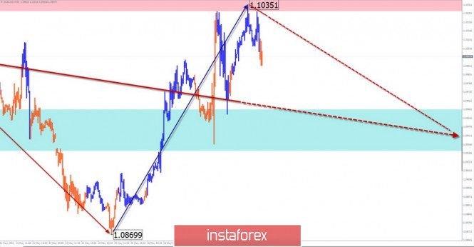Упрощенный волновой анализ и прогноз EUR/USD, AUD/USD, GBP/JPY на 28 маяИнстаФорекс - Instaforex, 5 лет назад EUR/USD Анализ: Ценовые движения европейской валюты в последние 2 месяца задаются алгоритмом горизонтальной коррекции. Волна вошла в заключительную фазу. Последний медвежий участок волны ведет отчет с 20 мая. В нем не хватает завершающего отрезка. Котировки находятся в зоне потенциального разворота. Прогноз: Движения ценовой пары сегодня ограничено встречными зонами. После попытки давления на зону сопротивления ожидается разворот и ход цены вниз. Зоны потенциального разворота Сопротивление: - 1.1030/1.1060 Поддержка: - 1.0960/1.0930 Рекомендации: Торговля на рынке евро сегодня возможен при внутридневном стиле. Для покупок ограничен потенциал. Основное внимание рекомендуется уделить поиску сигналов продажи в районе зоны сопротивления. AUD/USD Анализ: На рынке австралийского доллара продолжается формирование бычьей волны крупного масштаба. Ее последний участок от 4 мая достиг зоны промежуточного сопротивления. С 26 мая курс пары корректируется. Прогноз: Флетовая остановка имеет все шансы продлиться до конца текущей недели. Сегодня ожидается нисходящий вектор движения пары. На европейской сессии возможно кратковременное давление на зону сопротивления. Прорыв нижней границы зоны поддержки маловероятен. Зоны потенциального разворота Сопротивление: - 0.6620/0.6650 Поддержка: - 0.6550/0.6520 Рекомендации: Цена снижается против тренда, поэтому продажи могут быть рискованны. Они имеют смысл только при внутрисессионом стиле торговли. Лучшей тактикой сегодня будет оставаться вне рынка пары. GBP/JPY Анализ: С середины марта на графике кросса образуется восходящая волна. В прошедшие 2 месяца развивается боковая коррекция. Последний участок стартовал 30 апреля. Последнюю декаду формируется коррекция этого участка. Она близка к завершению. Прогноз: Сегодня ожидается перемещение цены в боковом коридоре между ближайшими встречными зонами. На европейской сессии можно ждать ценовой отскок вверх. Возврат к медвежьему курсу ожидается в конце дня либо завтра. Зоны потенциального разворота Сопротивление: - 132.80/131.10 Поддержка: - 131.90/131.60 Рекомендации: На ближайшей сессии на рынке кросса актуальны покупки сниженным лотом. В районе зоны сопротивления следует сменить направление торговли и отслеживать сигналы продажи. Пояснения: В упрощенном волновом анализе (УВА) волны состоят из 3 частей (А-В-С). Анализируется последняя незавершенная волна. Сплошным фоном стрелок показана сформированная структура, пунктирным - ожидаемые движения. Внимание: Волновой алгоритм не учитывает продолжительность движений инструмента по времени! Материал предоставлен компанией InstaForex - www.instaforex.com |