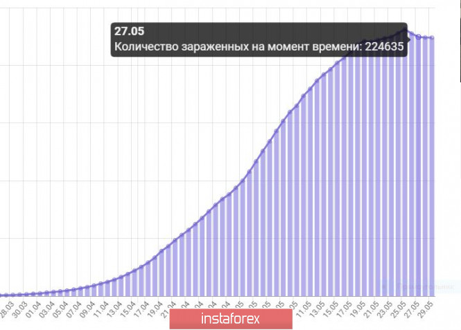 Дневник трейдера 29.05.2020. EURUSD – фиксируем профит. Covid19 в РоссииИнстаФорекс - Instaforex, 5 лет назад Это график активных случаев по России - то есть всего инфицированных за минусом выздоровевших и умерших. Видим а) Стабилизацию; б) Снижения не видим. Учтем, что стабилизация прошла за счет сильного спада новых случаев и большого числа выздоровевших в Москве - следовательно, в провинции пока имеем рост, к сожалению. А это график активных случаев в Москве на 29 мая - ситуация лучше, чем по России, но видим замедление на уровне 98 тысяч активных случаев. А это Петербург - график активных случаев, последние значения примерно на уровне 10 тысяч. Можно довольно надежно прогнозировать, что спад эпидемии в Петербурге начнется примерно через неделю, 7-10 июня. EURUSD - фиксируем профиты. Мы держали покупки от 1.0855 (кто следит за нами, знает) - и фиксируем профиты по текущим (1.1110 на 11:45 мск, момент написания обзора) Покупаем с отката от 1.1020. Материал предоставлен компанией InstaForex - www.instaforex.com |