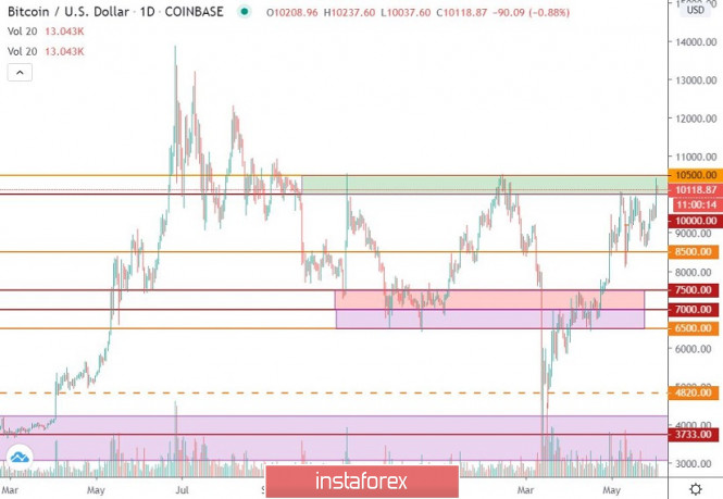 Аккумуляция торговых объемов может привести к росту BitcoinИнстаФорекс - Instaforex, 5 лет назад Приветствую криптохомячков и бывалых криптоэнтузиастов! Вот и прошло три недели с ХАЛВИНГ Биткоина, а что изменилось и на что стоит обратить внимание – разберем все по порядку. 11 мая 2020 года произошел новый этап усложнения добычи цифрового золота, где участники рынка сумели подготовиться к животрепещущему событию, откупая BTC еще за несколько недель до халвинга. В итоге котировка в очередной раз на своем пути встретила всем известный уровень взаимодействия торговых сил $10 000, где на систематической основе произошло замедление, тем самым еще до халвинга трейдеры зафиксировали прибыль с длинных позиций. Последующий процесс имел в себе своеобразную аккумуляцию торговых объемов, где котировка выработала новый диапазон в пределах значений $8500/$10 000. Стоит ли расценивать имеющееся замедление как платформу для будущего роста BTC, почему бы и нет, если на это есть свои причины. Участники рынка, как и крупные игроки, рассматривают новый виток жизни Биткоина как уже полноценный биржевой инструмент, и если ссылаться на исследование JPMorgan, то внутренняя стоимость биткоина совпадает с его рыночной ценой. То есть фундаментально обоснованная стоимость BTC с недавнего времени стала соответствовать рыночной цене криптовалюты, это можно считать хорошим сигналом для инвесторов. Возвращаясь обратно к ценовому диапазону $8500/$10 000, можно заметить, что ажиотаж спал, но аккумуляция нет, а за пределами границ сосредоточились стоп-ордера [StopLoss] $8300/$10 500. Тем самым пробой той или иной границы приведет к каскадной модели, где активность участников рынка возрастет в разы. Стоит учесть, что расположение стоп ордеров имеется по обеим сторонам диапазона, но все же заданное движение имеет восходящий наклон, а совокупность внешних факторов указывает на преобладающий интерес со стороны покупателей. Из недавних слухов-инсайдов GoldmanSachs пытался манипулировать мнением участников рынка, чтобы ослабить курс BTC для последующего его приобретения, но криптосообщество в лице крупных и влиятельных участников, как, к примеру, Братья Уинклвоссы, дали отпор двойным стандартам навязывающей стороны. Текущее развитие и перспективы Впервые с февраля текущего года котировке удалось достичь отметки $10 428, тем самым сблизив котировку с районом скопления стоп-ордеров $10 500, где уже в легком шоке сидят шортисты, которые ходят по лезвию ножа при текущей ситуации. Можно предположить, что обновление локальных максимумов – это один из сигналов, указывающих на намерение участников рынка в дальнейшем восходящем ходе. Не стоит спешить с действиями, если вы, конечно, не зашли в рынок по нашей рекомендации еще на пробое застоя $6500/$7500, но даже если вы сидите в профите и думаете о доливке, то подождите пока цена пройден отметку $10 500. Если наши теории верны, то мы можем увидеть настоящую крипто-весну, где поэтапное восхождение приведет котировку BTC к локальному максимуму 2019 года - $ 13 868, что, возможно, и не станет пределом. Общий фон крипторынка Анализируя общую рыночную капитализацию, можно увидеть хороший восходящий виток торговых объемов, где на текущий час Totalmarket составляет $284 млрд, что на $40 млрд больше, чем тремя неделями ранее. Если рассматривать график объемов в общих чертах, то видно, что пробой потолка 