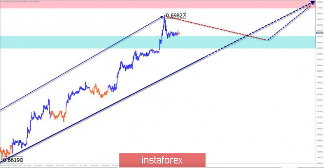 Упрощенный волновой анализ и прогноз EUR/USD, AUD/USD, GBP/JPY на 3 июняИнстаФорекс - Instaforex, 5 лет назад EUR/USD Анализ: Восходящая волна евро от 20 марта продолжает свое формирование. С 7 мая развивается заключительный участок (С). Цена приближается к нижней границе сильной зоны потенциального разворота. Структура волны на момент анализа не завершена. Прогноз: Маловероятно, что зона сопротивления может быть пробита котировками пары без предварительной подготовки. Сегодня ожидается завершение восходящего движения, формирование разворота и снижение в район зоны поддержки. Возобновление подъема вероятно не ранее завтрашнего дня. Зоны потенциального разворота Сопротивление: - 1.1230/1.1260 Поддержка: - 1.1150/1.1120 Рекомендации: Торговля на рынке фунта сегодня может быть рискованна. Лучшей тактикой на сегодня будет оставаться вне рынка и на конце текущего снижения отслеживать сигналы покупки. AUD/USD Анализ: Импульс восходящей волны от 19 марта привел котировки австралийского доллара к уровням полугодовой давности. Цена приближается к нижней границе зоны потенциального разворота крупного ТФ. Прогноз: Сегодня в первой половине дня возможна кратковременная остановка, с дрейфом котировок вдоль зоны поддержки. Возобновление восходящего курса можно ждать к концу суток либо завтра. Зоны потенциального разворота Сопротивление: - 0.7000/0.7300 Поддержка: - 0.6930/0.6900 Рекомендации: Торговля на рынке пары сегодня возможна только после завершения коррекционного флета. При появлении сигналов разворота рекомендуется искать точки входа в длинные позиции. GBP/JPY Анализ: Начавшаяся в середине марта восходящая волна кросса задает новый долгосрочный курс движения цены. Котировки приближаются к нижнему рубежу мощной разворотной зоны. Прогноз: После вероятной остановки к концу дня можно ждать возобновление восходящего курса пары. Расчетное сопротивление находится на нижней границе мощной зоны. После контакта цены с ней следует ждать образования как минимум промежуточной коррекции. Зоны потенциального разворота Сопротивление: - 137.50/137.80 Поддержка: - 136.50/136.20 Рекомендации: Для продажи кросса условий сегодня нет. В зоне расчетной поддержки рекомендуется отслеживать сигналы разворота для покупки инструмента. Пояснения: В упрощенном волновом анализе (УВА) волны состоят из 3 частей (А-В-С). Анализируется последняя незавершенная волна. Сплошным фоном стрелок показана сформированная структура, пунктирным - ожидаемые движения. Внимание: Волновой алгоритм не учитывает продолжительность движений инструмента по времени! Материал предоставлен компанией InstaForex - www.instaforex.com |