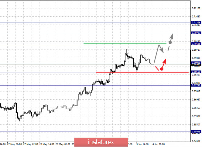 Фрактальный анализ по основным валютным парам на 4 июняИнстаФорекс - Instaforex, 5 лет назад Прогноз на 4 июня: Аналитический обзор валютных пар в масштабе Н1: По паре Евро/Доллар ключевыми уровнями в масштабе Н1 являются: 1.1344, 1.1294, 1.1254, 1.1168, 1.1137 и 1.1087. Здесь, мы продолжаем следить за восходящей структурой от 25 мая. Краткосрочное восходящее движение, ожидаем в коридоре 1.1254 – 1.1294, а также консолидацию цены. Потенциальным значением для верха, считаем уровень 1.1344, по достижении этого значения ожидаем откат к низу. Краткосрочное нисходящее движение, ожидаем в диапазоне 1.1168 – 1.1137, пробой последнего значения приведет к углубленной коррекции, в данном случае цель – 1.1087, этот уровень является ключевой поддержкой для восходящей структуры. Основная тенденция – локальная структура для верха от 25 мая Торговые рекомендации: Buy: 1.1255 Take profit: 1.1292 Buy: 1.1295 Take profit: 1.1344 Sell: 1.1168 Take profit: 1.1138 Sell: 1.1135 Take profit: 1.1088 По паре Фунт/Доллар ключевыми уровнями в масштабе Н1 являются: 1.2777, 1.2690, 1.2642, 1.2566, 1.2515 и 1.2441. Здесь, мы следим за восходящей структурой от 25 мая. Краткосрочное восходящее движение, ожидаем в диапазоне 1.2642 – 1.2690, пробой последнего значения позволит рассчитывать на движение к потенциальной цели – 1.2777, по достижении которого, ожидаем консолидацию, а также откат в коррекцию. Консолидированное движение, ожидаем в диапазоне 1.2566 – 1.2515, пробой последнего значения приведет к углубленной коррекции, здесь цель – 1.2441, этот уровень является ключевой поддержкой для верха. Основная тенденция – локальная восходящая структура от 25 мая Торговые рекомендации: Buy: 1.2642 Take profit: 1.2690 Buy: 1.2692 Take profit: 1.2775 Sell: Take profit: Sell: 1.2513 Take profit: 1.2450 По паре Доллар/Франк ключевыми уровня в масштабе Н1 являются: 0.9671, 0.9639, 0.9618, 0.9586, 0.9564, 0.9533 и 0.9515. Здесь, мы следим за нисходящей структурой от 25 мая, на текущий момент цена находится в коррекции. Краткосрочное нисходящее движение, ожидаем в диапазоне 0.9586 - 0.9564, пробой последнего значения приведет к выраженному движению, здесь цель – 0.9533. Потенциальным значением для низа, считаем уровень 0.9515, по достижении которого, ожидаем консолидацию, а также откат к верху. Краткосрочное восходящее движение, возможно в диапазоне 0.9618 – 0.9639, пробой последнего значения приведет к углубленной коррекции, в данном случае цель – 0.9671, этот уровень является ключевой поддержкой для низа. Основная тенденция – нисходящая структура от 25 мая Торговые рекомендации: Buy: 0.9618 Take profit: 0.9637 Buy: 0.9641 Take profit: 0.9670 Sell: 0.9586 Take profit: 0.9566 Sell: 0.9562 Take profit: 0.9535 По паре Доллар/Иена ключевыми уровнями в масштабе являются: 109.87, 109.56, 109.20, 109.01, 108.72, 108.50 и 108.19. Здесь, мы следим за развитием восходящего цикла от 29 мая. Краткосрочное восходящее движение, ожидаем в коридоре 109.01 – 109.20, а также консолидацию. Пробой уровня 109.20 должен сопровождаться выраженным восходящим движением, здесь цель – 109.56, возле этого уровня консолидация. Потенциальным значением для восходящей тенденции, считаем уровень 109.87, по достижении этого уровня ожидаем откат к низу. Краткосрочное нисходящее движение, возможно в диапазоне 108.72 – 108.50, пробой последнего значения приведет к углубленной коррекции, здесь цель – 108..19. Основная тенденция: восходящий цикл от 29 мая Торговые рекомендации: Buy: 109.20 Take profit: 109.55 Buy: 109.58 Take profit: 109.85 Sell: 108.70 Take profit: 108.52 Sell: 108.48 Take profit: 108.20 По паре Канадский доллар/Доллар ключевыми уровнями в масштабе Н1 являются: 1.3735, 1.3634, 1.3583, 1.3545, 1.3452, 1.