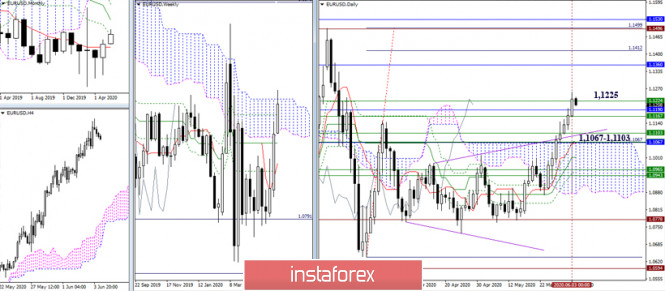 EUR/USD и GBP/USD 4 июня – рекомендации технического анализаИнстаФорекс - Instaforex, 5 лет назад EUR/USD и GBP/USD 4 июня – рекомендации технического анализа EUR/USD Игроки на повышение вчера продолжили подъём, протестировав сильное и значимое сопротивление верхней границы недельного облака (1,1225). Встреча может привести к торможению. Для формирования результата взаимодействия понадобится время, так как уровень недельного формата. Притяжение сейчас могут оказывать близ лежащие уровни 1,1167 (недельный Фибо Киджун) – 1,1190 (месячный Фибо Киджун) – 1,1224 (недельный Сенкоу Спан Б). Наиболее важные поддержки расположены сейчас в районе 1,1067 – 1,1103 (верхняя граница дневного креста + нижняя граница недельного облака и недельный Киджун + месячный Тенкан). На младших таймах в настоящий момент наблюдаем развитие нисходящей коррекции, среди её первых результатов можно отметить закрепление ниже центрального Пивот-уровня дня (1,1219) и поддержку медвежьих настроений большинством индикаторов. Следующим значимым ориентиром коррекции является поддержка недельной долгосрочной тенденции (1,1142). Надёжное закрепление ниже приведёт к изменению действующего баланса сил на младших таймах и позволит рассматривать формирование отбоя от встреченных сопротивлений старших временных интервалов. Завершению коррекции сейчас может послужить возврат на сторону быков поддержки центрального Пивот-уровня (1,1219) и выход из зоны коррекции (1,1258). Далее ориентирами внутри дня станут сопротивления классических Пивот-уровней – 1,1271 – 1,1310 – 1,1362. GBP/USD В результате того, что пара столкнулась с достаточно плотной, широкой и значимой зоной сопротивлений, объединившей в себе недельные уровни (Сенкоу Спан А + Сенкоу Спан Б + Фибо Киджун 1,2710) и месячный среднесрочный тренд (1,2595), и на прохождение данной зоны понадобятся силы, поэтому в ближайшее время игроки на повышение могут взять паузу, а то и вовсе позволить сопернику реализовать коррекционное снижение. Поддержки сейчас можно выделить на следующих рубежах 1,2459 (недельный Киджун + месячный Тенкан) и 1,2360 – 1,2305 (дневной крест + дневное облако + месячный Фибо Киджун). На младших таймах уже развивается нисходящее коррекционное движение. Ключевым ориентиром данной коррекции на Н1 сейчас служит поддержка недельной долгосрочной тенденции (1,2472). При надёжном закреплении ниже появятся основания для изменений в балансе сил на Н1, а на старших таймах будет формироваться полноценный отбой от встреченных сопротивлений. Завершение действующей коррекции и восстановление позиций игроками на повышение для продолжения подъёма возможны после возврата на сторону быков центрального Пивот-уровня (1,2676) и обновлении максимума (1,2614). Ichimoku Kinko Hyo (9.26.52), Pivot Points (классические), Moving Avarage (120) Материал предоставлен компанией InstaForex - www.instaforex.com |