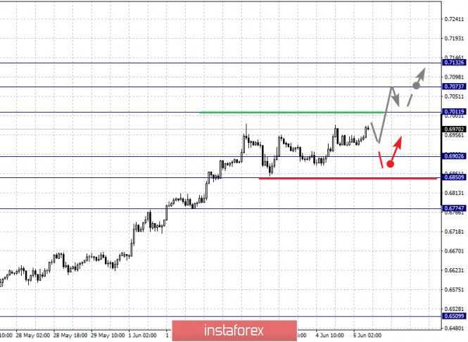Фрактальный анализ по основным валютным парам на 5 июняИнстаФорекс - Instaforex, 5 лет назад Прогноз на 5 июня: Аналитический обзор валютных пар в масштабе Н1: По паре Евро/Доллар ключевыми уровнями в масштабе Н1 являются: 1.1429, 1.1365, 1.1299, 1.1254 и 1.1170. Здесь, цена находится возле предельных значений, в связи с чем, ожидаем уход в коррекцию. Краткосрочное восходящее движение, возможно в диапазоне 1.1365 – 1.1429, отсюда ожидаем разворот в коррекцию. Краткосрочное нисходящее движение, ожидаем в диапазоне 1.1299 – 1.1254, пробой последнего значения приведет к углубленной коррекции, в данном случае цель – 1.1170, этот уровень является ключевой поддержкой для восходящей структуры. Основная тенденция – локальная структура для верха от 25 мая Торговые рекомендации: Buy: 1.1365 Take profit: 1.1420 Buy: Take profit: Sell: 1.1299 Take profit: 1.1255 Sell: 1.1252 Take profit: 1.1180 По паре Фунт/Доллар ключевыми уровнями в масштабе Н1 являются: 1.2777, 1.2690, 1.2642, 1.2566, 1.2515 и 1.2441. Здесь, мы следим за восходящей структурой от 25 мая. Краткосрочное восходящее движение, ожидаем в диапазоне 1.2642 – 1.2690, пробой последнего значения позволит рассчитывать на движение к потенциальной цели – 1.2777, по достижении которого, ожидаем консолидацию, а также откат в коррекцию. Консолидированное движение, ожидаем в диапазоне 1.2566 – 1.2515, пробой последнего значения приведет к углубленной коррекции, здесь цель – 1.2441, этот уровень является ключевой поддержкой для верха. Основная тенденция – локальная восходящая структура от 25 мая Торговые рекомендации: Buy: 1.2642 Take profit: 1.2690 Buy: 1.2692 Take profit: 1.2775 Sell: Take profit: Sell: 1.2513 Take profit: 1.2450 По паре Доллар/Франк ключевыми уровня в масштабе Н1 являются: 0.9618, 0.9586, 0.9564, 0.9533, 0.9515 и 0.9475. Здесь, мы следим за нисходящей структурой от 25 мая, на текущий момент цена находится в коррекции. Краткосрочное нисходящее движение, ожидаем в диапазоне 0.9533 – 0.9515, пробой последнего значения приведет к выраженному движению, в данном случае потенциальная цель – 0.9475, по достижении этого уровня ожидаем откат к верху. Краткосрочное восходящее движение, возможно в диапазоне 0.9564 – 0.9586, пробой последнего значения приведет к углубленной коррекции, в данном случае цель – 0.9618, этот уровень является ключевой поддержкой для низа. Основная тенденция – нисходящая структура от 25 мая Торговые рекомендации: Buy: 0.9564 Take profit: 0.9584 Buy: 0.9588 Take profit: 0.9616 Sell: 0.9533 Take profit: 0.9516 Sell: 0.9513 Take profit: 0.9477 По паре Доллар/Иена ключевыми уровнями в масштабе являются: 109.87, 109.56, 109.20, 109.01, 108.72, 108.50 и 108.19. Здесь, мы следим за развитием восходящего цикла от 29 мая. Консолидированное движение, ожидаем в коридоре 109.01 – 109.20, а также консолидацию. Пробой уровня 109.20 должен сопровождаться выраженным восходящим движением, здесь цель – 109.56, возле этого уровня консолидация. Потенциальным значением для восходящей тенденции, считаем уровень 109.87, по достижении этого уровня ожидаем откат к низу. Краткосрочное нисходящее движение, возможно в диапазоне 108.72 – 108.50, пробой последнего значения приведет к углубленной коррекции, здесь цель – 108.19. Основная тенденция: восходящий цикл от 29 мая Торговые рекомендации: Buy: 109.58 Take profit: 109.85 Buy: 109.22 Take profit: 109.54 Sell: 108.70 Take profit: 108.52 Sell: 108.48 Take profit: 108.20 По паре Канадский доллар/Доллар ключевыми уровнями в масштабе Н1 являются: 1.3735, 1.3634, 1.3583, 1.3545, 1.3452, 1.3422, 1.3346 и 1.3299. Здесь, мы следим за развитием локального нисходящего цикла от 29 мая. Продолжения движения к низу, ожидаем после прохода ценой шу