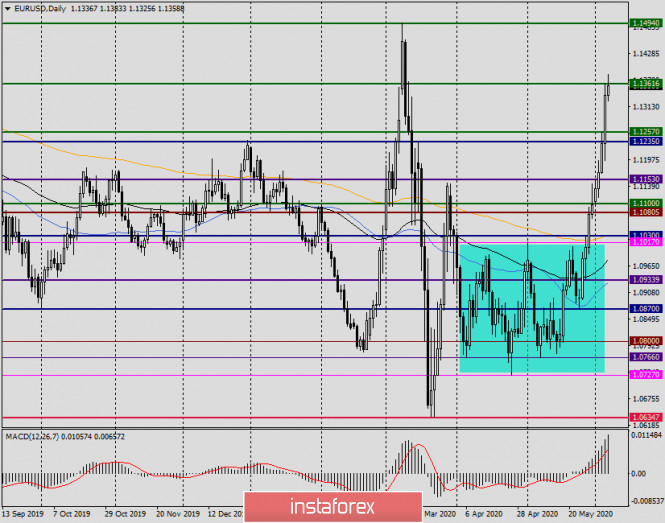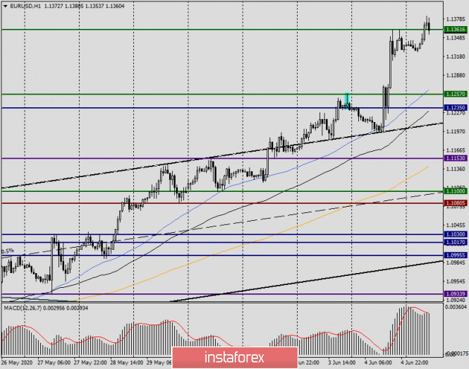 Обзор и рекомендации по EUR/USD на 5 июня 2020 годаИнстаФорекс - Instaforex, 5 лет назад ЕЦБ увеличивает стимулы, евро растёт Доброго времени суток, уважаемые коллеги! Как отмечалось во вчерашней статье по EUR/USD, главным событием четверга стало решение Европейского Центрального Банка (ЕЦБ) по ставкам и пресс-конференция главы этого ведомства Кристин Лагард. Ну что же, подведём итоги этого важного события. Предположения некоторых экспертов о том, что ЕЦБ снизит ставку по депозитам на 10 б.п., не оправдались, все ставки остались на прежних уровнях: основная на нулевом, депозитная минус 0.5%, маржинальная ставка 0.25%. Прогнозы об увеличении объёмов закупок облигаций на 250 миллиардов евро также оказались далеки от реальности. ЕЦБ действительно увеличил программу PEPP, только на гораздо большую сумму, которая составила 600 миллиардов евро. Таким образом, объём Pandemic Emergency Purchase Programme (сокращённо PEPP) с лёгкой руки ЕЦБ вырос с 750 млрд до 1 триллиона 350 миллиардов евро. Поистине небывалый объём скупки облигаций! При этом срок действия данной антикризисной программы продлён до середины следующего года, а при необходимости - до полного завершения кризиса, вызванного эпидемией коронавируса. Напомню, что ранее эту программу планировалось проводить до конца года текущего. Значительное увеличение объёмов PEPP и продление сроков действия программы отчётливо указали на беспрецедентность урона, который понесла европейская экономика от COVID-19. На своей пресс-конференции председатель ЕЦБ Кристин Лагард выразила надежду, что экономический кризис достиг своего дна и теперь ожидается медленное и постепенное восстановление. О силе негативных последствий пандемии COVID-19 красноречиво указывают пересмотренные в сторону понижения экономические прогнозы европейского Центробанка. Как заявила Кристин Лагард, темпы сокращения экономики во 2-ом квартале текущего года будут весьма и весьма существенными, а экономическое восстановление начнётся только в третьем квартале. Годовые прогнозы по ВВП еврозоны значительно понижены. Если в ещё марте годовой прогноз составлял +0.8%, то теперь ожидается, что по итогам текущего года ВВП сократится на 8.7%. Значительно снижен и прогноз по инфляции. Ещё в марте инфляционный рост ожидался на уровне 1.1%, теперь же, по последним данным, инфляция в 2020 году вырастет лишь на 0.3%. Что касается новостей из-за океана, то вчерашние данные по числу первичных и повторных обращений за пособиями по безработице вновь обнажили её рост, который имел место быть на прошлой неделе. Более чёткую и точную картину мы получим сегодня, когда в 15:30 (мск) Министерство труда США опубликует официальные данные по изменению числа занятых в несельскохозяйственном секторе экономики, уровню безработицы и росту средней почасовой оплаты труда. Именно эти три показателя являются наиболее важными и значимыми для участников рынка. Смею предположить, что именно трудовая статистика из США повлияет на итоги закрытия текущей недели. Daily А пока пара продолжает бурный рост. При этом отмечу, что на вчерашние экономические прогнозы ЕЦБ и выступление Кристин Лагард можно было реагировать по-разному. В таких ситуациях рынок, как правило, выбирает движение в текущем направлении, что и было сделано. Максимумы вчерашних торгов были показаны на 1.1361, а цена закрытия сессии 4 июня составила 1.1337. На д