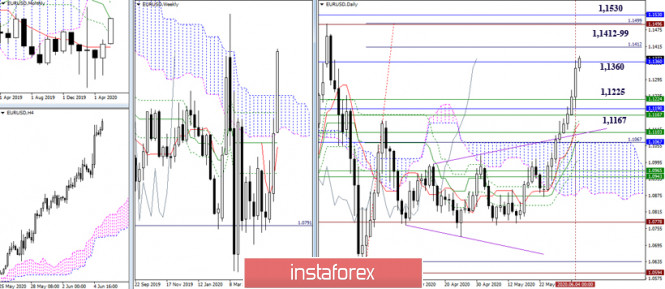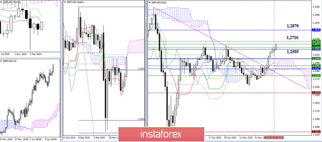 EUR/USD и GBP/USD 5 июня – итоги анализа отчета СОТ (Commitments of Traders)ИнстаФорекс - Instaforex, 5 лет назад EUR/USD и GBP/USD 5 июня – итоги анализа отчета СОТ (Commitments of Traders) EUR/USD Ожидаемое вчера торможение ограничилось лишь младшими временными интервалами. Дневной тренд был активно продолжен. Пара достигла следующего важного ориентира – месячного среднесрочного тренда (1,1260). В результате вновь возможно торможение. Прорыв этого сопротивления откроет дорогу к исполнению дневной цели на пробой облака (1,1412-99) и месячному Фибо Киджуну (1,1530). В случае торможения или развития нисходящей коррекции вчерашние сопротивления, во главе с верхней границей недельного облака (1,1225), теперь могут работать как поддержки (1,1225 – 1,1190 – 1,1167). Нужно отметить, что, как и ожидалось, заданная при закрытии предыдущей недели и месяца тенденция получила своё продолжение. Из анализа прошлого отчета СОТ (Commitments of Traders от 26.05.20) был сделан вывод, что крупные игроки рынка, отвечающие за сохранение действующего трендового преимущества, сохраняют и усиливают поддержку игроков на повышение. Предполагалось также, что дневное трендовое движение не обойдётся без глубоких нисходящих коррекций, так как итоговое большинство всё же было на стороне медведей (91,9 % против 86,3%). Но данное ожидание пока не получило подтверждение, возможно, из-за того, что группа Commercials, способная спровоцировать разворот, на момент отчетности не имела значительного и нужного перевеса в позициях short над позициями long. Сегодня закрываем неделю и ждём выхода нового отчета. В настоящий момент преимущество на стороне игроков на повышение, восходящий дневной тренд находится в активной фазе. Коррекционные предпосылки на старших таймах пока не сформированы. На младших таймах, имея поддержку всех анализируемых технических инструментов, развивается восходящий тренд. Повышательными ориентирами внутри дня являются сопротивления классических Пивот-уровней – 1,1400 (R1) – 1,1465 (R2) – 1,1567 (R3). Ключевые поддержки младших таймов расположены сегодня на 1,1298 (центральный Пивот-уровень) и 1,1191 (недельная долгосрочная тенденция). GBP/USD Игроки на понижение исполнили вчера незначительное коррекционное снижение, обновив минимум предыдущего дня. Тем не менее коррекция не получила более масштабного развития. В течение дня она была завершена с продолжением восходящего тренда. Активное продвижение игроков на повышение сейчас сдерживает достаточно широкая зона сопротивлений, объединяющая в себе скопление уровней, – месячный среднесрочный тренд (1,2595), недельное облако (1,2620-70) и недельный Фибо Киджун (1,2710). Для формирования результата взаимодействия со встреченными сопротивлениями понадобится время. В последнем отчете СОТ (Commitments of Traders от 26.05.20) преимущество группы (Non-Commercial) оставалось на стороне медвежьего тренда. Тем не менее сохранить медвежий тренд фунту не удалось. Более того, на дневном графике Ишимоку появился золотой крест, в результате чего к завершению недели пара пришла с восходящим дневным трендом. Видимо, обстоятельства на данном этапе были сильнее крупных трендовых медведей, что лишь подогревает интерес к данным сегодняшнего отчета СОТ. На Н1 действует восходящий тренд. Преимущества технических инструментов, пока полностью на стороне игроков на повышение. Сопротивлениями внутри дня служат классические Пивот-уровни (1,2649 – 1,2707 – 1,2781