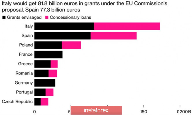Евро загнал противника в уголИнстаФорекс - Instaforex, 5 лет назад Начало июня стало настоящим бенефисом для Кристин Лагард и единой европейской валюты. ЕЦБ расширил программу экстренной покупки активов из-за пандемии на €600 млрд, сообщил о том, что она продолжится, по меньшей мере, до июня 2021, доходы реинвестировать планируется до конца 2022, а француженка в лучших традициях Марио Драги сообщила, что решение об увеличении масштабов QE было принято единогласно. Правда, экс-глава Центробанка делал это для того, чтобы утопить евро, а его нынешний руководитель – для того, чтобы поддержать итальянские облигации. Получилось. Спреды по их ставкам с немецкими аналогами пошли вниз, а котировки EUR/USD взлетели к 3-месячным максимумам. Для кого-то может показаться странным, что монетарная экспансия приводит к укреплению курса региональной валюты, однако нужно понимать, что реакция Forex на те или иные события отличается на разных стадиях экономического цикла. В периоды рецессии инвесторы помешаны на масштабах стимулов, которые могут сгладить спад. По негласному правилу, доля поддержки в % от ВВП должна соответствовать размеру потерь экономики. ЕС сделал больше. Благодаря выпуску облигаций Еврокомиссией на €750 млрд и дополнительному бюджету на €1,1 трлн, а также ранее принятым программам помощи размер фискального стимула оценивается в 13% от ВВП еврозоны. В то же время ЕЦБ прогнозирует, что ее экономика даже в случае худшего сценария развития событий, связанного со второй волной COVID-19, просядет на 12,6%. Базовый вариант предполагает потери в 8,7%. Фискальный стимул для стран ЕС Таким образом, щедрость ЕЦБ и ЕС привели к укреплению евро, однако ралли EUR/USD было связано с уверенностью инвесторов в воплощение в жизнь франко-германского проекта фискального стимулирования. Создалось впечатление, что он реализован де-факто, хотя на самом деле не было еще даже де-юре. Программа должна быть утверждена на саммите ЕС 11-12 июня. В случае ее корректировки, по позициям «быков» по единой европейской валюте будет нанесен серьезный удар. Впрочем, Еврокомиссия постаралась сделать так, чтобы и волки в лице Нидерландов, Австрии, Дании и Швеции оказались сытыми, и овцы (южные страны ЕС) целыми, так что шансы провала невелики. Наряду с фискальным и монетарным стимулами самому продолжительному ежедневному ралли EUR/USD с 2011 способствовали распродажи доллара США. Инвесторам на фоне восстановления мировой экономики и роста глобального аппетита к риску уже не требуются активы-убежища в прежнем объеме, а баланс ФРС растет так быстро, что впору подумать, кто сейчас может быть слабее «американца». На июньском заседании FOMC способен приостановить процесс падения индекса USD, сделав намек на использование практики таргетирования кривой доходности. К тому же данные по рынку труда США за май показали, что рецессия может быть не такой страшной, как ранее считалось. Быть может, рановато избавляться от доллара? Технически таргет на 88,6% по паттерну «Летучей мыши» достигнут, поэтому я рекомендую закрывать сформированные от уровня 1,099 лонги по EUR/USD. В дальнейшем откаты в направлении 1,124 и 1,12 следует использовать доя покупок. EUR/USD, дневной график |
