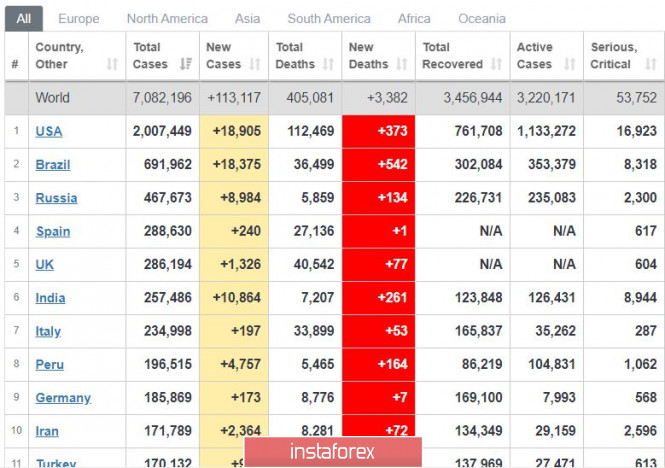 Торговый план 08.06.2020 EURUSD. Covid19. ФРС. ОптимизмИнстаФорекс - Instaforex, 5 лет назад Covid19 в мире: позитив. В США резкое падение смертей в сутки - ниже 400, а долго держалось 1000 и выше. Некоторое снижение случаев в сутки ниже 20000. В Бразилии значительное снижение новых случаев, с 30 тысяч до ниже 20 тысяч - но нужно подтверждение в ближайшие дни. В России число новых случаев держится на уровне 8000 - 9000. Проблема в том, что число выздоровлений только +4000 - а это значит, что число активных случаев растет - новый максимум сегодня. Россия по эпидем-состоянию не готова к отмене карантинных мер - кроме Москвы и тех регионов, которые слабо задеты эпидемией. Рынок США: график S&P 500-дневка. Оптимизм: рынок труда отскочил от дна - в мае безработица отскочила, +2.5 миллиона роста занятости после обвала на 20 миллионов в апреле. Как видим, до докризисных максимумов осталось каких-то 7% роста... Ждем отката от максимумов - и начинаем выстраивать продажи. Поскольку кризис еще впереди. Еще одна причина для оптимизма - расовые волнения ясно пошли на спад в США. EURUSD: Тренд наверх. Агрессивно можно купить по текущим со стопом ниже на 45 пунктов. Консервативно нужно ждать отката по дневке примерно до 1.1200 и покупать. На новой неделе - ФРС в среду - ставку оставят, разумеется, на 0.125% - но вопрос в тексте заявления - будут ли еще наливать ликвидность. В четверг недельный отчет по занятости также весьма важен. Материал предоставлен компанией InstaForex - www.instaforex.com |