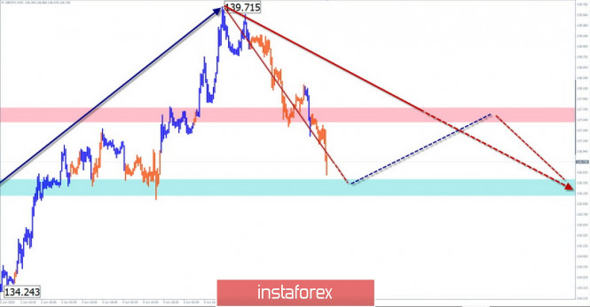 Упрощенный волновой анализ и прогноз EUR/USD, AUD/USD, GBP/JPY на 9 июняИнстаФорекс - Instaforex, 5 лет назад EUR/USD Анализ: На графике общеевропейской валюты с начала марта продолжается формирование восходящей волны. Весь прошедший месяц она формировала заключительную часть (С). Цена достигла промежуточной зоны сопротивления, от которой последние дни образуется откат. Прогноз: Сегодня высока вероятность продолжения движения цены в боковом коридоре между встречными зонами. В первой половине дня вероятно давление на зону поддержки. Не исключен кратковременный прорыв нижней границы поддержки. Разворот и смену курса можно ждать в конце дня. Зоны потенциального разворота Сопротивление: - 1.1330/1.1360 Поддержка: - 1.1260/1.1230 Рекомендации: Сегодня торговля на рынке евро могут быть рискованной и не рекомендуется. Лучшей тактикой будет воздержаться от торговли на время коррекции и на ее конце совершить покупки инструмента. AUD/USD Анализ: Направление тренда австралийского доллара с середины марта задается восходящей волной дневного масштаба. Цена достигла зоны сильного сопротивления крупного таймфрейма. Вдоль ее нижней границы с прошлой недели дни образуется плоская коррекция. Прогноз: Сегодня ожидается завершение последней части коррекционной волны. Затем можно ждать формирование разворота и возврат к восходящему курсу. Последняя фаза вероятно в конце дня либо завтра Зоны потенциального разворота Сопротивление: - 0.7000/0.7030 Поддержка: - 0.6930/0.6300 Рекомендации: Текущее снижение противоречит основному направлению тренда, поэтому продажи рискованны. В районе расчетной поддержки рекомендуется отслеживать все возникающие сигналы покупки инструмента. GBP/JPY Анализ: В структуре восходящей волны от середины марта прослеживается четкий зигзаг. Последняя часть волны (С) ведет отсчет с 18 мая. Волна не завершена. Цена находится в рамках сильной зоны потенциального разворота, от которой в последние дни стал формироваться нисходящий откат. Прогноз: По своему потенциалу ценовое снижение претендует на начало коррекции. Сегодня ожидается завершение хода цены вниз и последующий ценовой подъем. Прокол нижней границы зоны поддержки в процессе разворота не исключен. Зоны потенциального разворота Сопротивление: - 137.50/137.80 Поддержка: - 136.40/136.10 Рекомендации: До появления однозначных признаков смены курса продажи кросса могут использоваться только в интрадее. На конце текущего снижения после сигнала разворота рекомендуется искать сигналы покупки пары. Пояснения: В упрощенном волновом анализе (УВА) волны состоят из 3 частей (А-В-С). Анализируется последняя незавершенная волна. Сплошным фоном стрелок показана сформированная структура, пунктирным - ожидаемые движения. Внимание: Волновой алгоритм не учитывает продолжительность движений инструмента по времени! Материал предоставлен компанией InstaForex - www.instaforex.com |