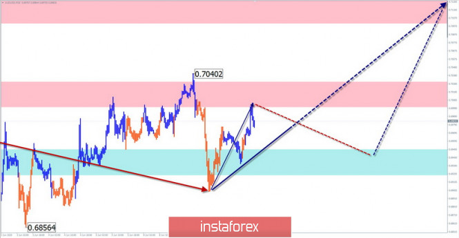 Упрощенный волновой анализ и прогноз GBP/USD и AUD/USD на 10 июняИнстаФорекс - Instaforex, 5 лет назад GBP/USD Анализ: Восходящая волна британского фунта стерлингов от 18 марта достигла нижней границы крупной зоны потенциального разворота. Структура волны не завершена. Прогноз: Сегодня высока вероятность возобновления давление на верхнюю разворотную зону. Ожидается общий восходящий настрой ценового движения. На ближайшей торговой сессии не исключен кратковременный откат в зону поддержки. Зоны потенциального разворота Сопротивление: - 1.2830/1.2860 Поддержка: - 1.2730/1.2700 Рекомендации: Сегодня на рынке английского фунта для продажи условий нет. На конце откатных движений рекомендуются покупки инструмента. Потенциал сделок ограничен размером суточного хода. AUD/USD Анализ: Направление движения австралийского доллара с середины марта задается восходящей волной. Последний ее участок стартовал 4 мая. С начала июня график образовал плоскую коррекцию. Вчерашний подъем цены имеет разворотный потенциал и станет началом следующей части трендовой волны. Прогноз: На протяжении ближайших торговых сессий ожидается завершение разворотной конструкции и начало активной фазы подъема. При прорыве ближайшего сопротивления подъем до следующей зоны возможен уже сегодня. Зоны потенциального разворота Сопротивление: - 0.7100/0.7130 - 0.7000/0.7030 Поддержка: - 0.6950/0.6920 Рекомендации: Сегодня на рынке австралийца условий для продажи пары нет. Рекомендуется на концах всех откатных движений отслеживать сигналы разворота для входа в длинные позиции. Пояснения: В упрощенном волновом анализе (УВА) волны состоят из 3 частей (А-В-С). Анализируется последняя незавершенная волна. Сплошным фоном стрелок показана сформированная структура, пунктирным - ожидаемые движения. Внимание: Волновой алгоритм не учитывает продолжительность движений инструмента по времени! Материал предоставлен компанией InstaForex - www.instaforex.com |