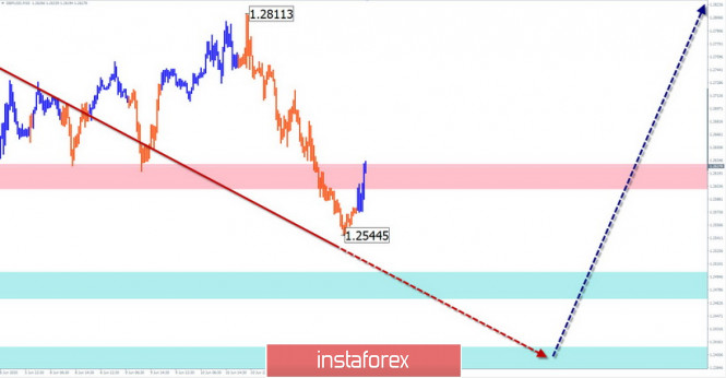 Упрощенный волновой анализ и прогноз GBP/USD и AUD/USD на 12 июняИнстаФорекс - Instaforex, 5 лет назад GBP/USD Анализ: В незавершенной до сих пор восходящей волне британского фунта с 18 мая развивается заключительная часть волновой модели. В начале недели цена достигла нижней границы сильного сопротивления, от которого в последние дни развивается нисходящая коррекция. Прогноз: Сегодня можно ожидать общий нисходящий настрой движения. Ближайшая поддержка показывает наиболее вероятную зону завершения текущей коррекции. В случае прорыва завершения можно ждать на следующем уровне. Зоны потенциального разворота Сопротивление: - 1.2600/1.2630 Поддержка: - 1.2500/1.2470 - 1.2410/1.2380 Рекомендации: Торговля на рынке фунта сегодня возможна только сниженным лотом в рамках интрадея. Для покупок условий нет. Сигналы продажи рекомендуется отслеживать в зоне расчетного сопротивления. AUD/USD Анализ: Направление тренда австралийского доллара с середины марта задается восходящей волной дневного ТФ. 2 недели назад цена достигла нижней границы сильной зоны сопротивления. Вдоль нее образовалась промежуточная коррекция. Начавшийся сегодня ценовой подъем может быть началом разворотной конструкции. Прогноз: Сегодня вероятен общий боковой вектор движения цены. На ближайшей сессии ожидается завершение подъема. Далее можно ждать разворота и снижение курса пары к зоне поддержки. Зоны потенциального разворота Сопротивление: - 0.6900/0.6930 Поддержка: - 0.6820/0.6790 Рекомендации: Торговля на рынке «аусси» сегодня возможна только при внутридневном стиле. Лот разумней снизить. Более безопасно воздержаться от торговли до завершения всей коррекции, с поиском сигналов покупки в районе расчетной поддержки. Пояснения: В упрощенном волновом анализе (УВА) волны состоят из 3 частей (А-В-С). Анализируется последняя незавершенная волна. Сплошным фоном стрелок показана сформированная структура, пунктирным - ожидаемые движения. Внимание: Волновой алгоритм не учитывает продолжительность движений инструмента по времени! Материал предоставлен компанией InstaForex - www.instaforex.com |
